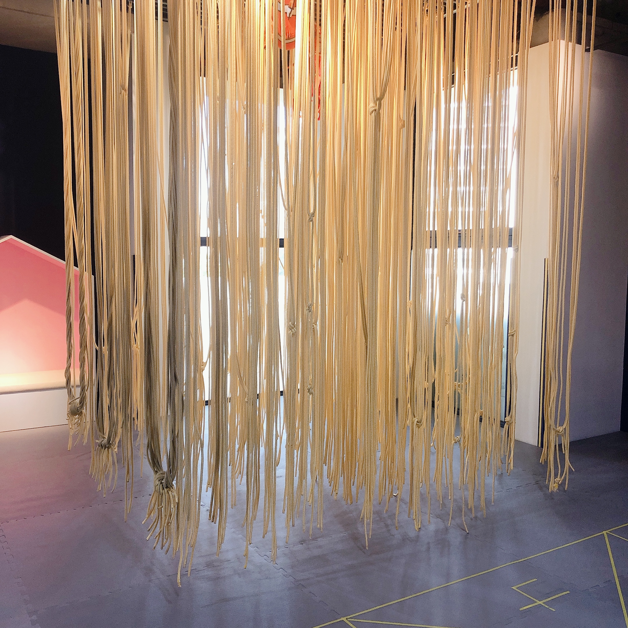 방방장 위에는 풍선, 인형 등이 여기저기 놓여 있는데 둘째 소요미는 커다란 뱀 인형에 매료되었다. (집에 가야 한다고 하니 "큰 뱀아 큰 뱀아"하면서 엉엉 울었다는... 그래서 뱀 인형 사주려고 네이버스토어 장바구니에 넣어 두었지...) 긴 줄에 매달려서 그네도 타 보고, 바로 옆에 그려져 있는 사방치기도 해 보았다.