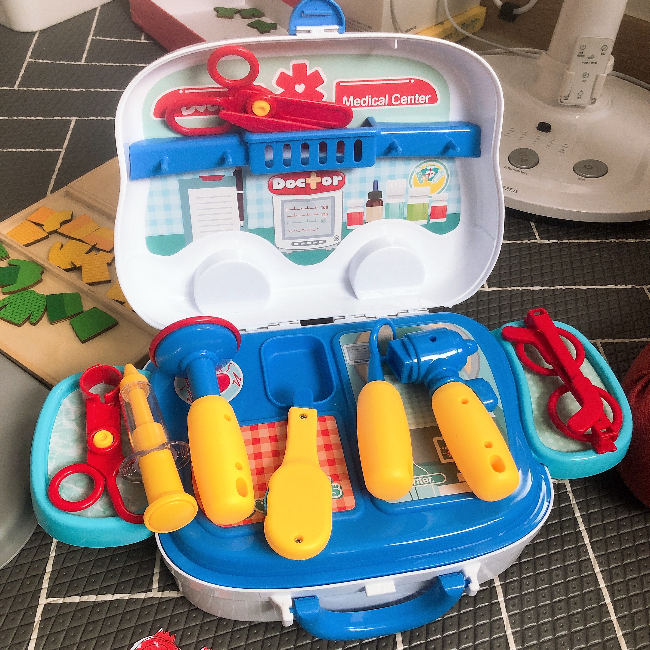 아가플러스 자동차가방 병원놀이는 의사선생님을 따라하며 역할극 체험이 가능하며, 놀이를 통해 사회성 발달에도 도움을 주는 장난감이다. 아마 어릴 적 병원놀이를 한번도 해보지 않은 사람은 없을 것이다. 가방안에 주사기, 체온계, 안경, 가위 등 진찰 도구들이 포함되어 있다. 장난감을 처음 들었을 때 가장 처음 받은 느낌은 "가볍다" 였다.
