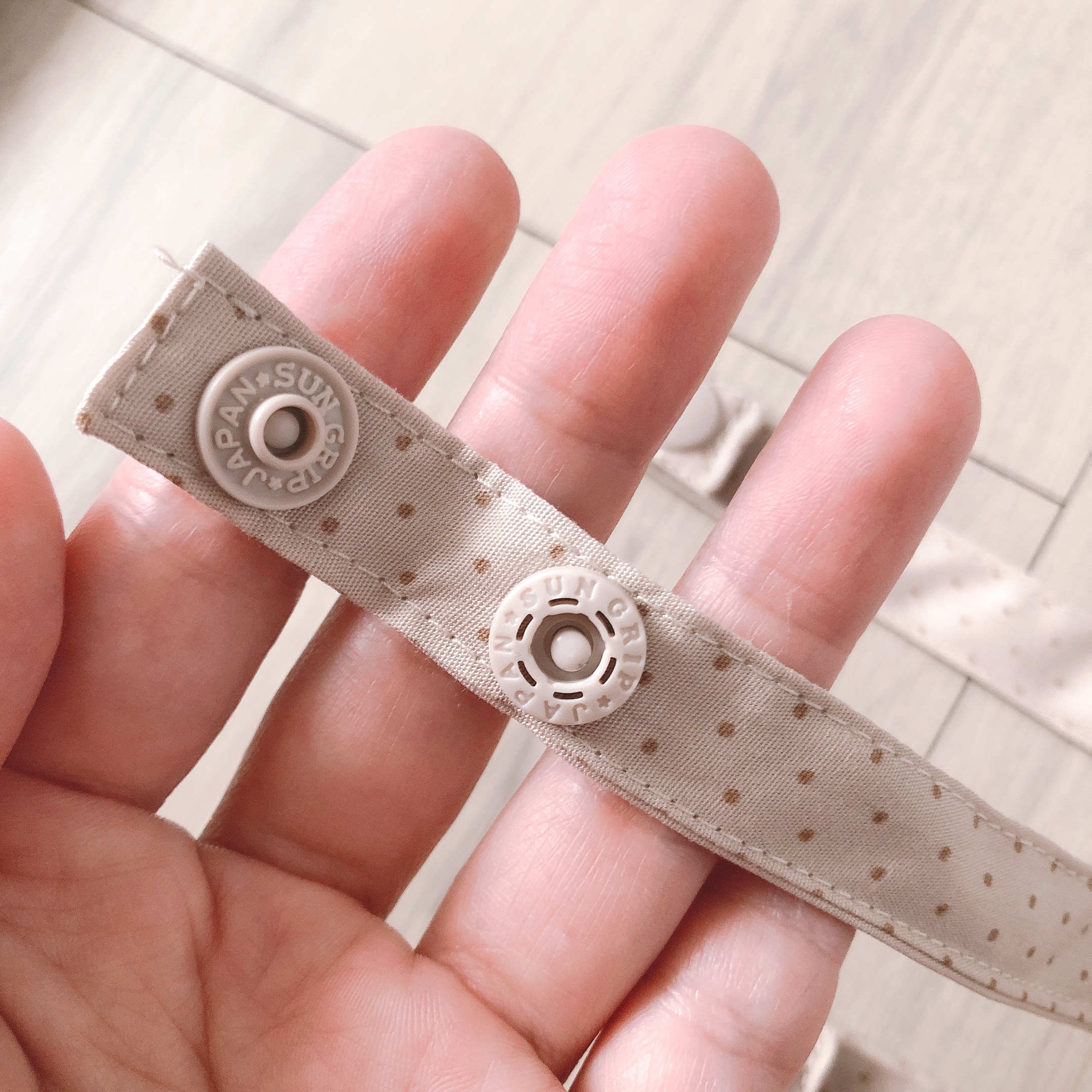 핸드메이드 제작이라 조금 오래 기다렸지만, 친절하게 지연 안내 메세지도 받아볼 수 있어 괜찮았다. 그리고 온라인 사진으로 보는 것보다 실물이 훨~씬 예쁘고 꼼꼼하게 제작되어 기다린 보람이 있었다. 일단 마음에 들었던 점은 천으로 제작되어 피부에 닿아도 부드럽고 자극이 없다는 것과 똑딱이 방식이라 탈부착이 용이하다는 것이었다.