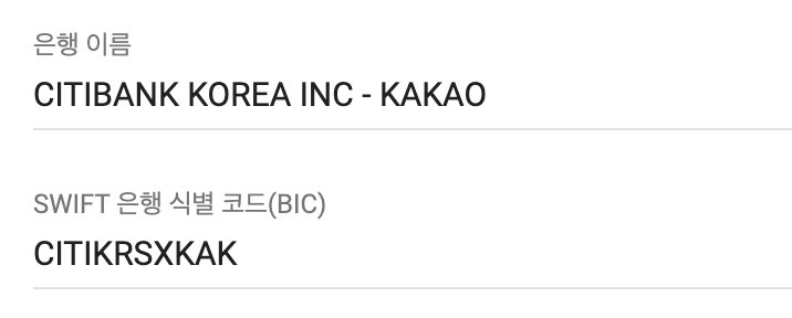 - 해외 은행 코드(SWIFT CODE)는 CITIKRSXKAK