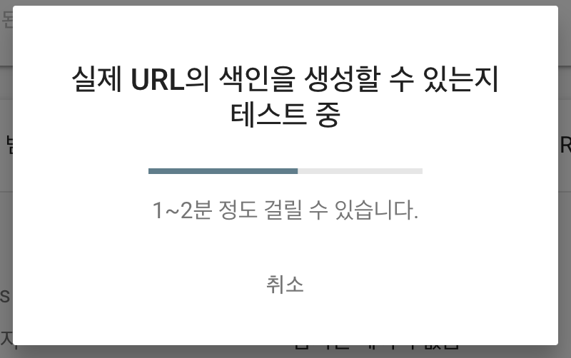 색인을 생성할 수 있는지 테스트를 하는데 1~2분 정도 소요되는 것 같다.