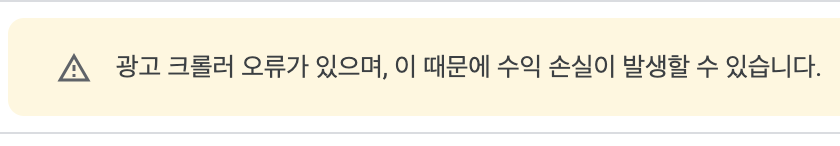 최근 수익 확인을 하러 애드센스 웹사이트에 들어갈때마다 상단에 "광고 크롤러 오류가 있으며, 이 때문에 수익 손실이 발생할 수 있습니다." 라는 알림 메세지가 보였다. 계속 신경이 쓰여 주말을 이용해 애드센스 광고 크롤러 오류 문제를 해결해보기로 했다.