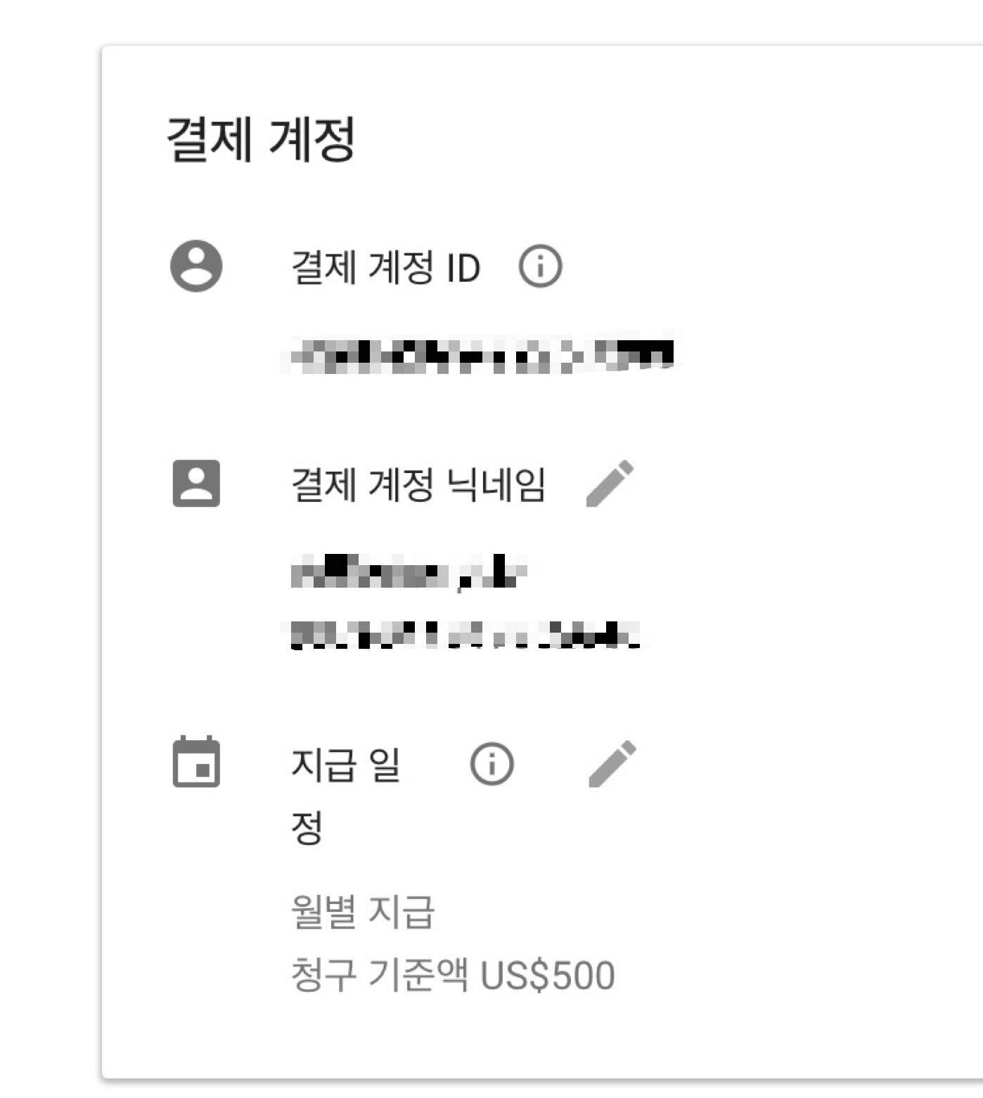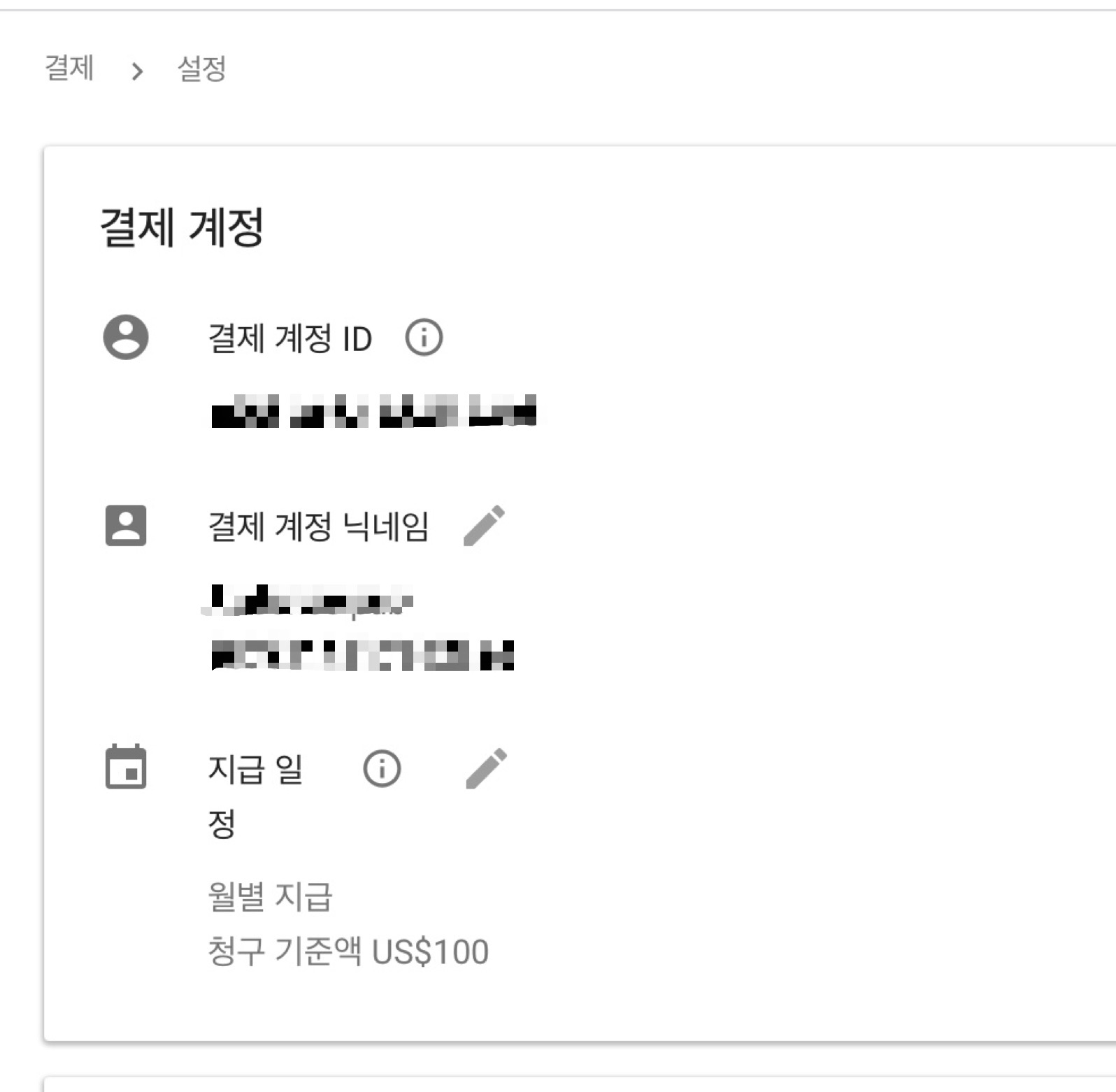 결제 계정 ID와 닉네임, 지급 일정 등을 확인할 수 있다. 지급 일정을 변경한 적이 없다면 월별 지급, 청구 기준액 US$100으로 설정되어 있을 것이다. 우리는 청구 기준액을 변경할 것이므로 지급 일정 옆의 연필 아이콘을 선택한다.