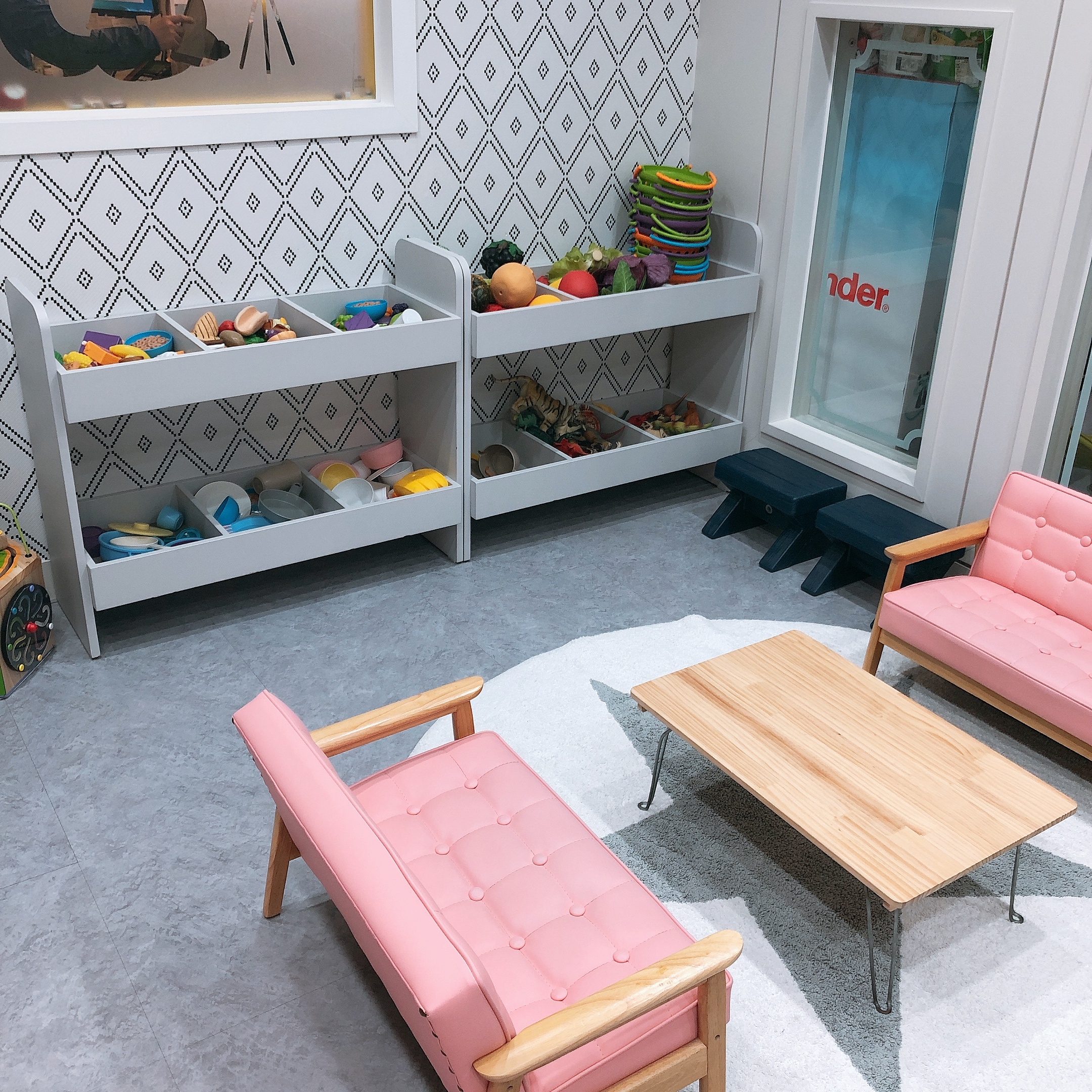 나는 아이들이 노는 동안 노트북으로 업무를 봐야 하기 때문에, 보호자들이 대기할 수 있는 라운지가 넓고 쾌적하여 마음에 쏙 들었다. 중앙 부분이 라운지이며 공간을 빙 둘러 아이들이 놀이할 수 있는 공간이 알차게 마련되어 있다.