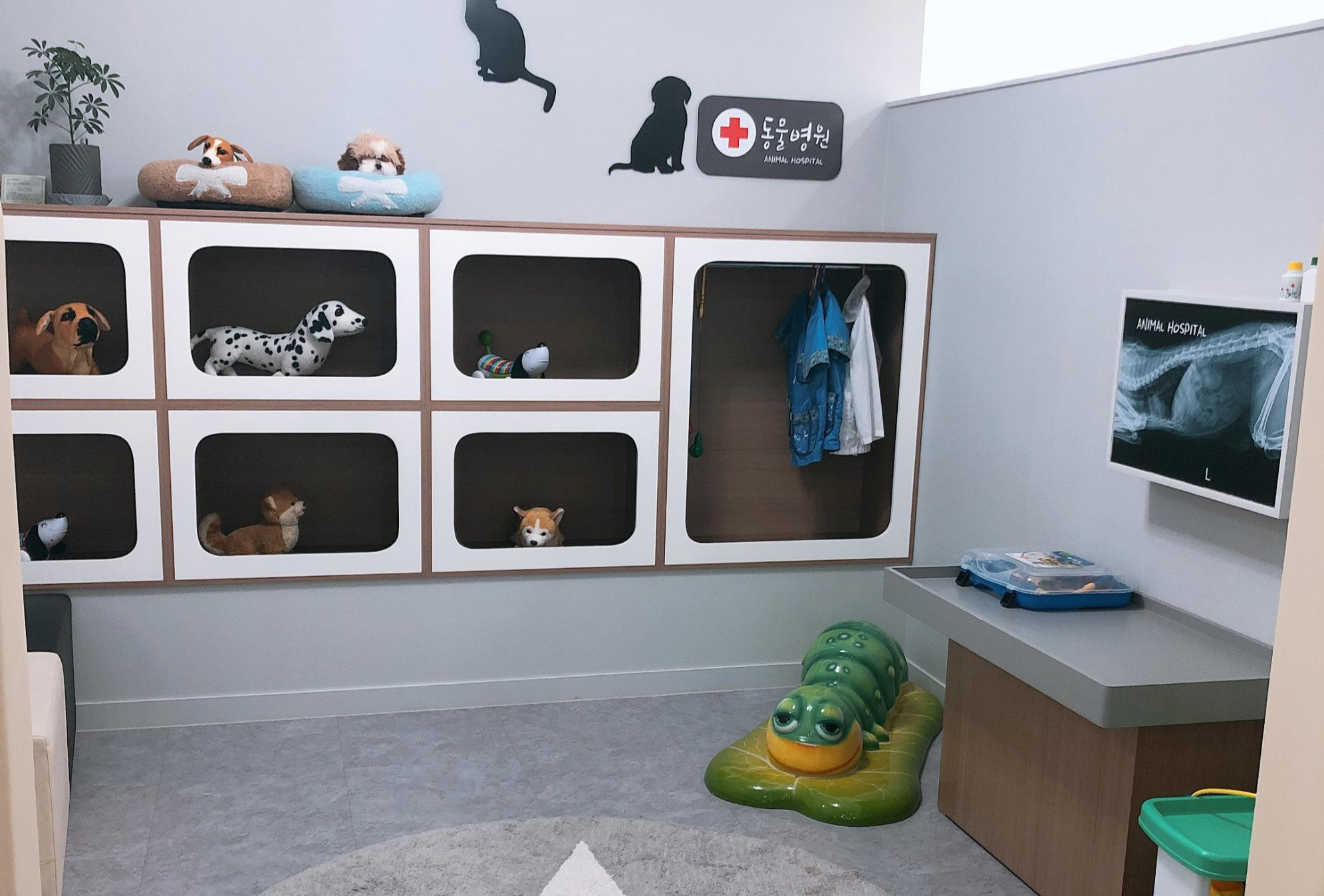 동물병원 버전의 놀이 공간이 있다. 일반 병원 컨셉은 많이 본 것 같은데 동물병원이라니... 오호, 이건 좀 신기했다. 우리 아이들은 방방이에 정신이 팔려서 이 곳에서는 놀지 않았지만 ㅜㅜ 동물을 좋아하는 아이들이라면 즐거운 시간을 보낼 것 같다.