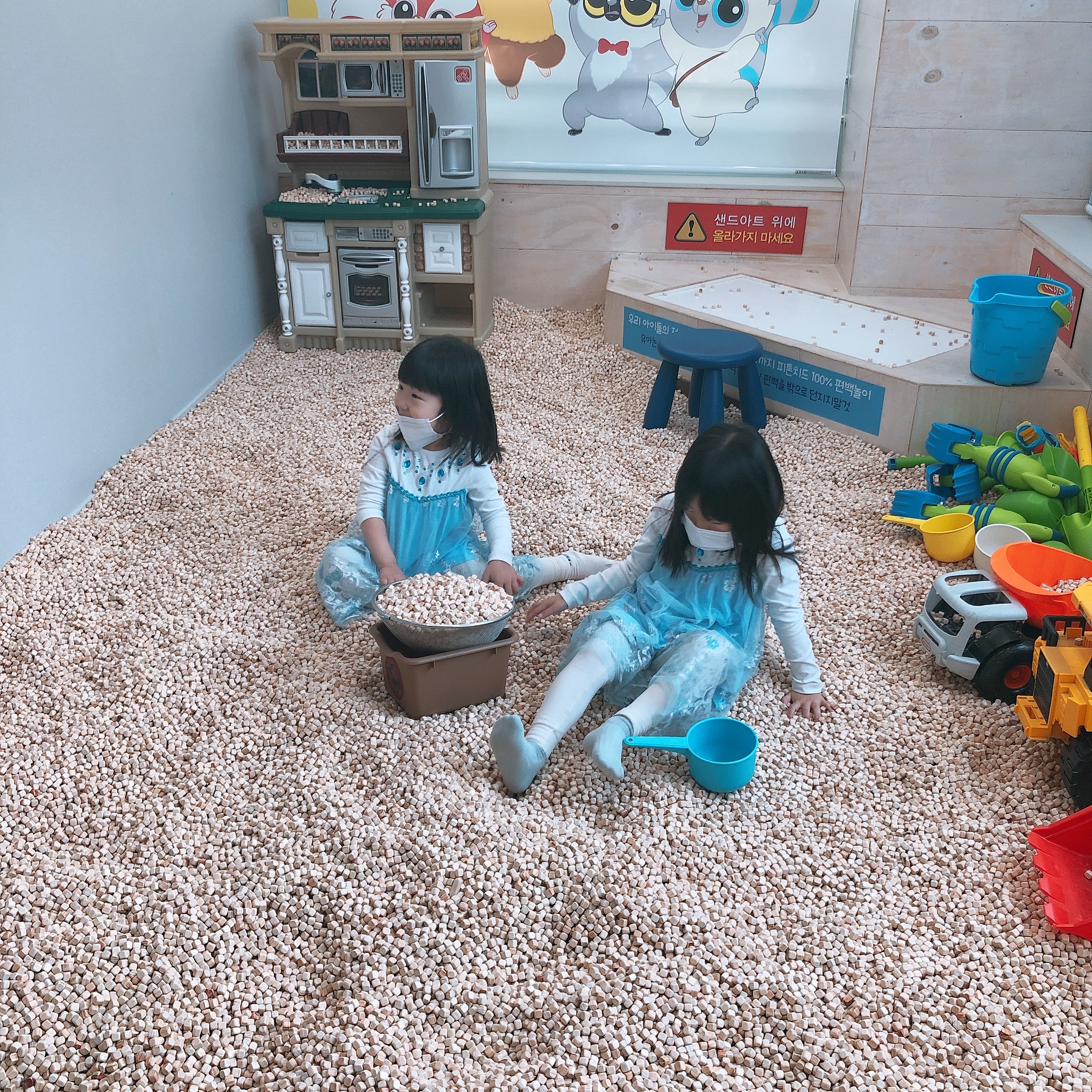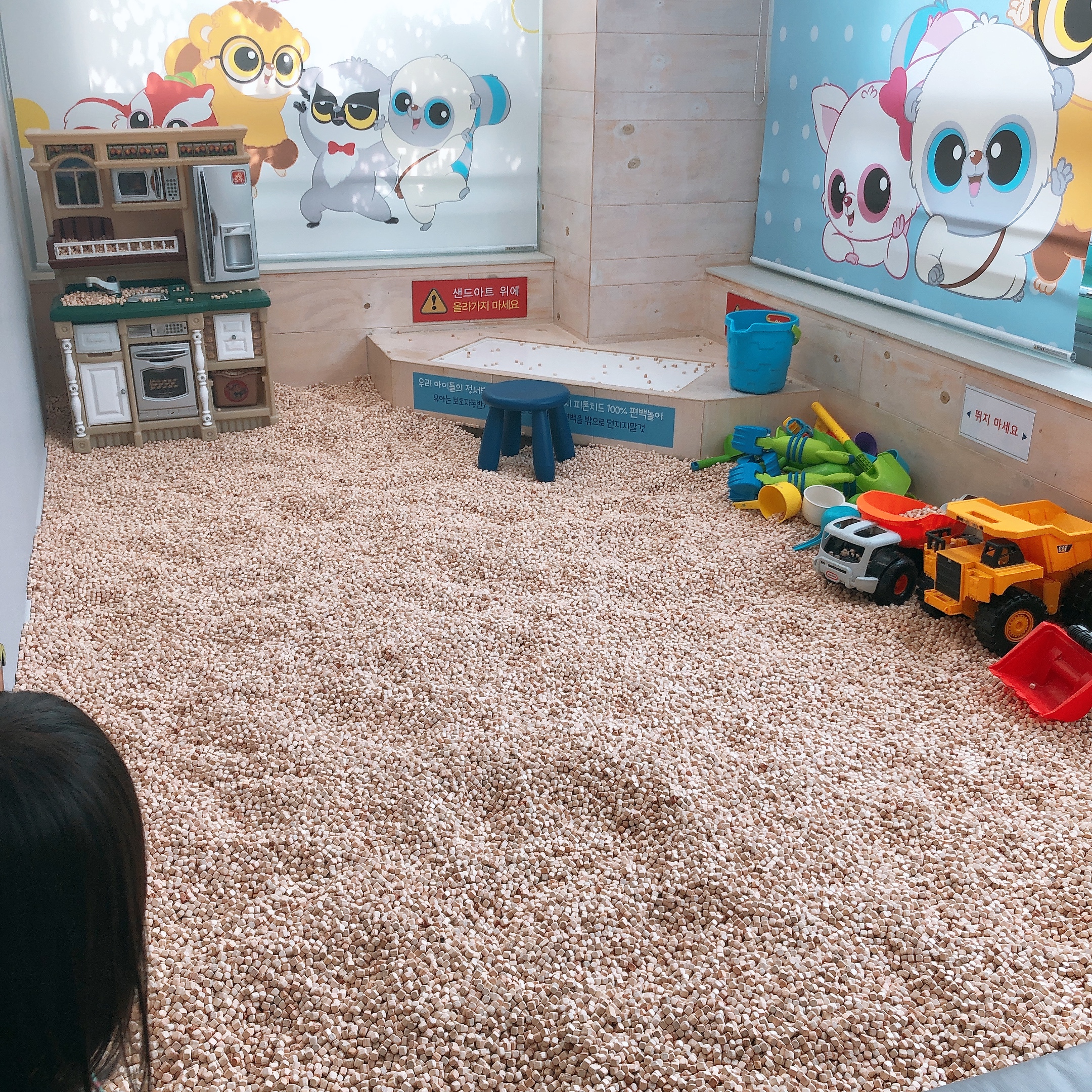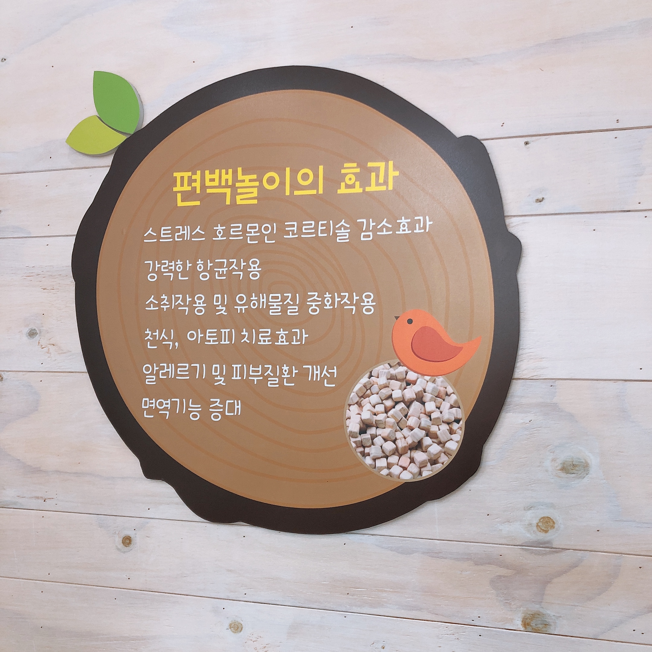 이게 없으면 키즈카페가 아니다, 편백존! 스트레스 호르몬인 코르티솔 감소효과와 강력한 향균작용, 소취작용 및 유해물질 중화작용, 천식 아토피 치료효과, 알레르기 및 피부질환 개선, 면역기능 증대 등 여러모로 건강에 좋은 편백나무 조각들이 가득한 공간이다.