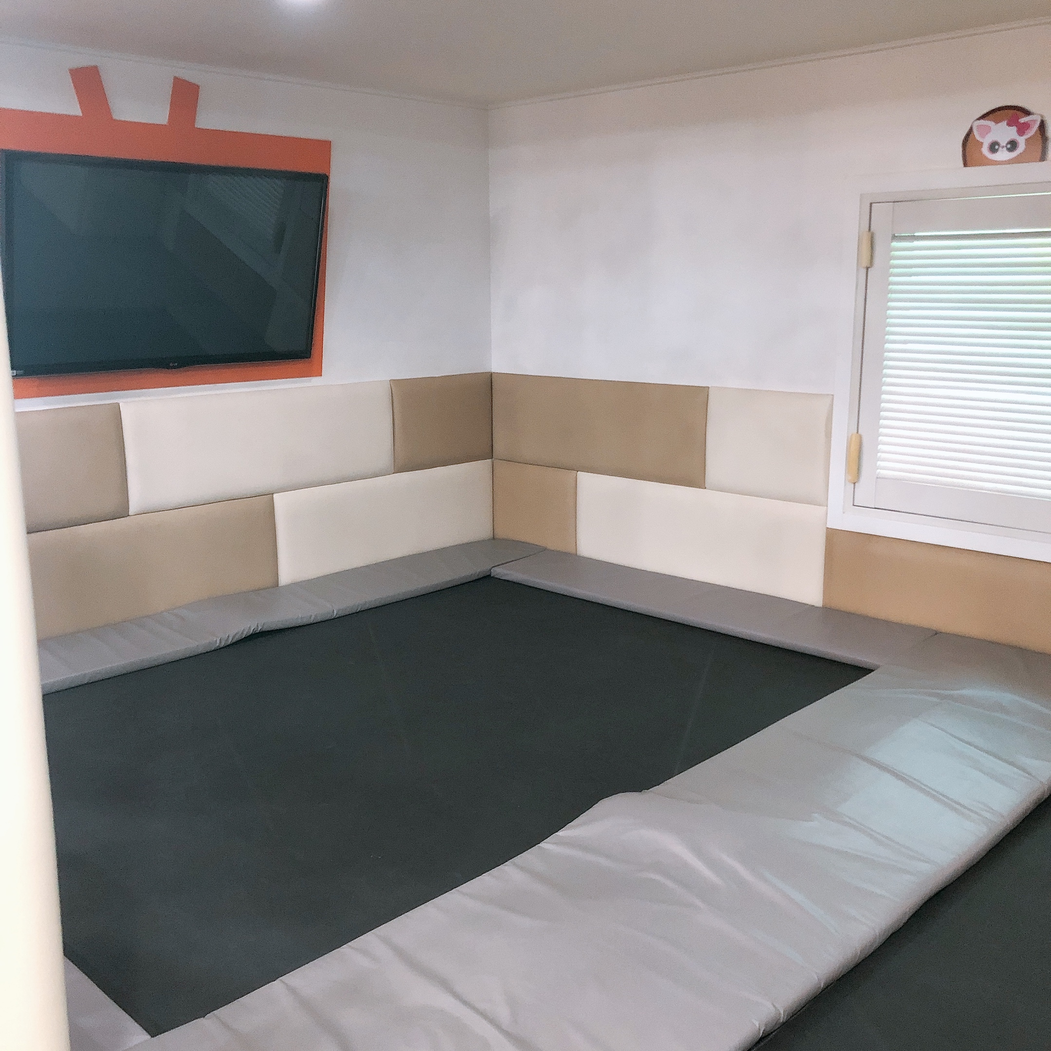 그리고 우리 아이들이 가장 좋아하는 방방장! 대형 방방장과 유아전용 트램펄린 - 공간이 2개로 나뉘어 있어 연령별로 안전하게 이용이 가능하다.