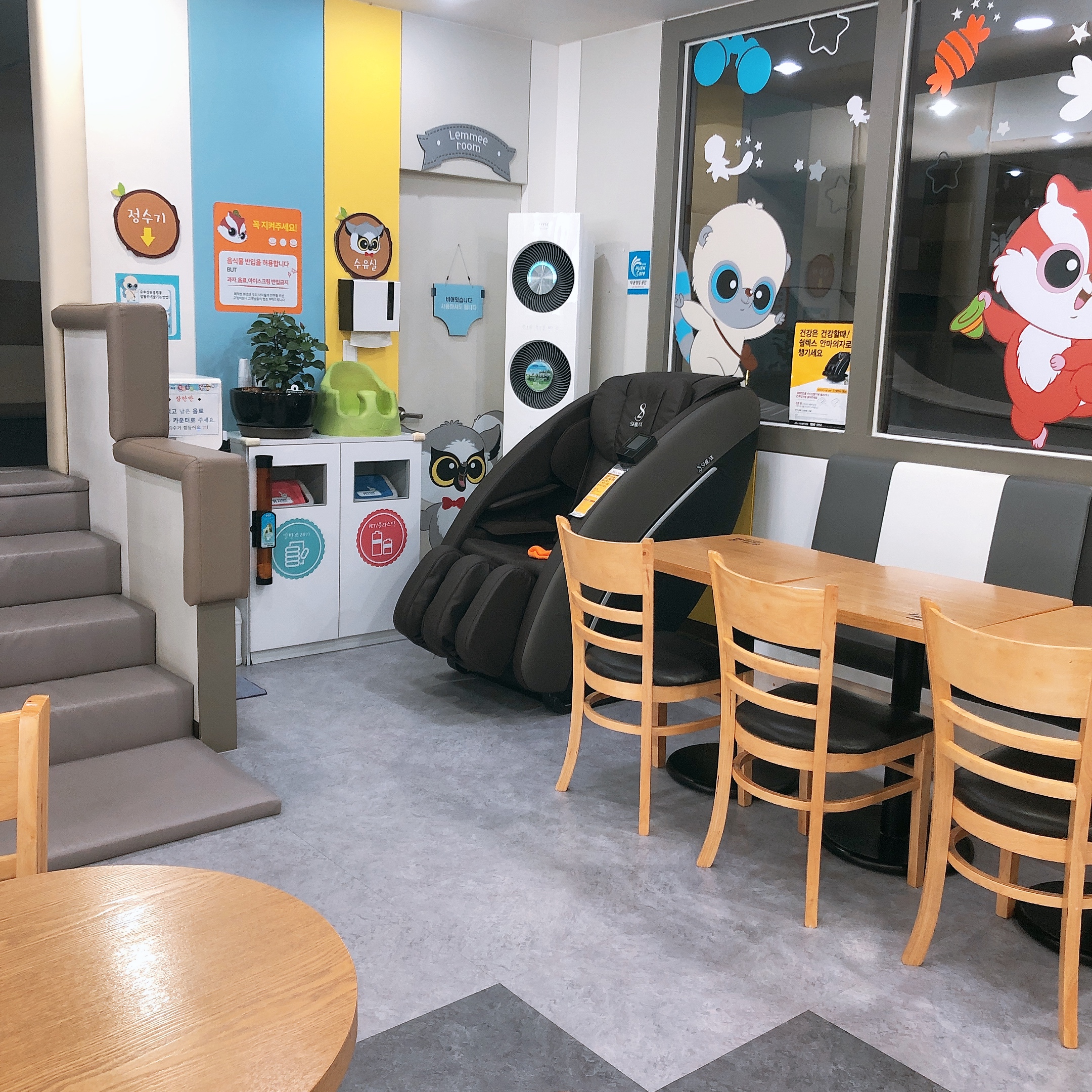 라운지 구석에는 보호자를 위한 안마기가 마련되어 있으며 3군데 정도 뽑기 기계가 있다. (유료로 사용 가능)
