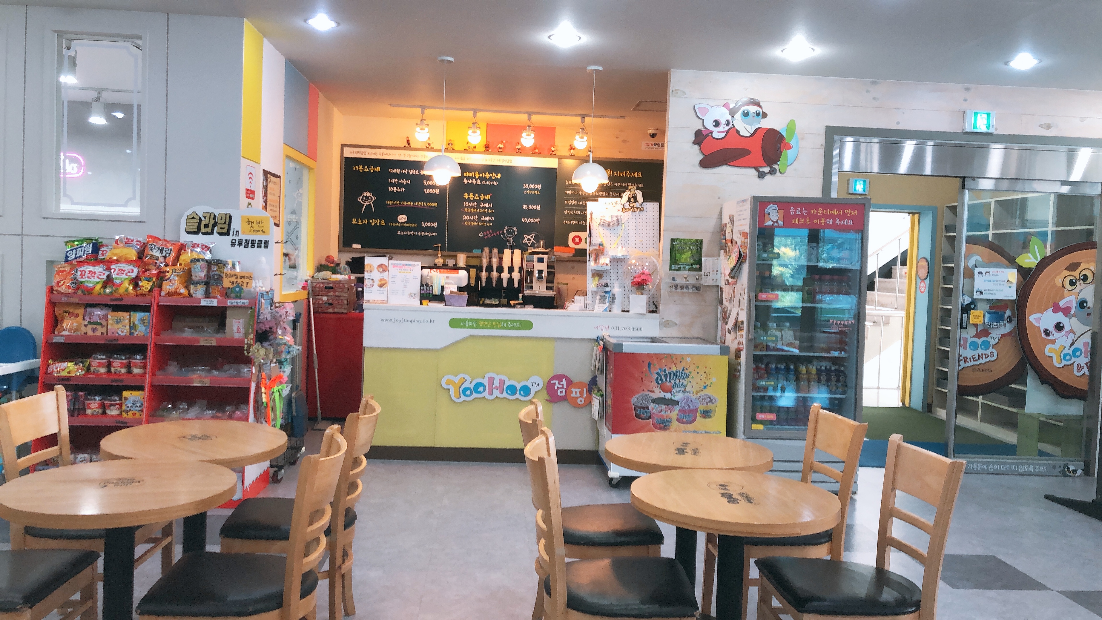 델리만쥬, 핫도그(모짜렐라/소세지), 컵떡볶이(매콤/크림/짜장) 등 먹을 거리와 구슬 아이스크림, 과자 등 간식거리도 이것저것 준비되어 있다. 나는 카페라떼 한 잔, 아이들은 모짜렐라 핫도그를 각각 주문해서 맛있게 먹었다.