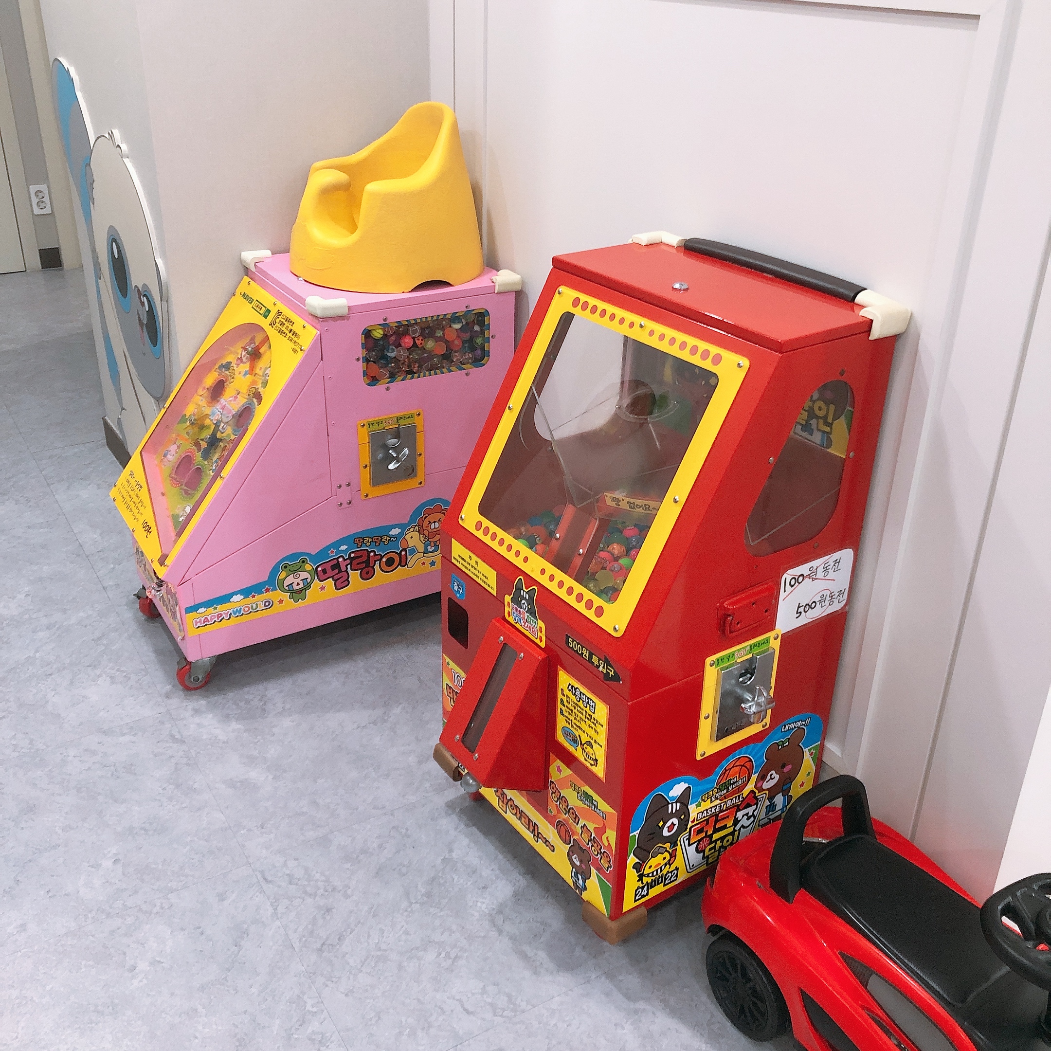 라운지 구석에는 보호자를 위한 안마기가 마련되어 있으며 3군데 정도 뽑기 기계가 있다. (유료로 사용 가능)