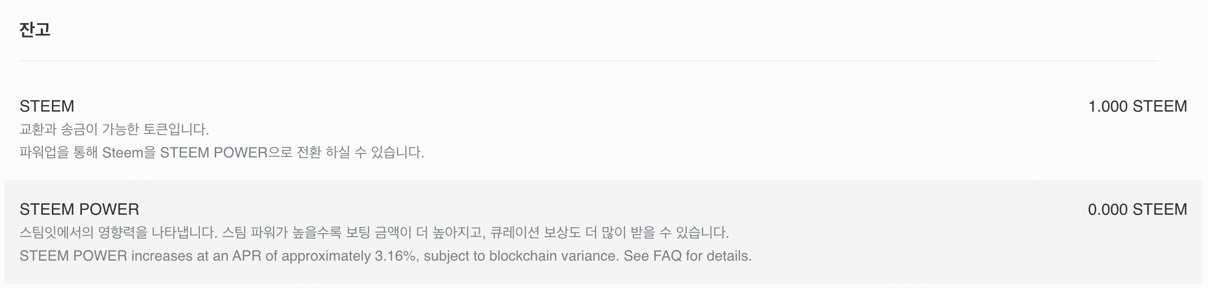 조금 기다리면 스팀잇 지갑(wallet)으로 스팀이 들어온 것을 확인할 수 있다. 지갑을 사용하다보면 코인 이동 시간이 오래 걸려서 답답한 경우가 종종 있는데, 업비트에서 스팀잇 지갑으로 스팀을 이동하는 것은 정말 놀랄 정도로 속도가 빨랐다. (대만족)