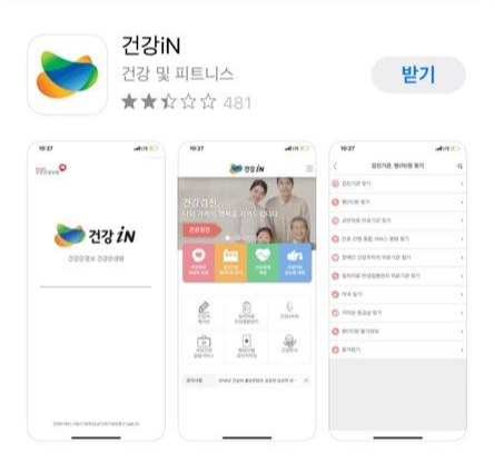 앱 스토어에서 건강in을 검색하여 앱을 다운로드한다. ios와 안드로이드 모두 가능하다.