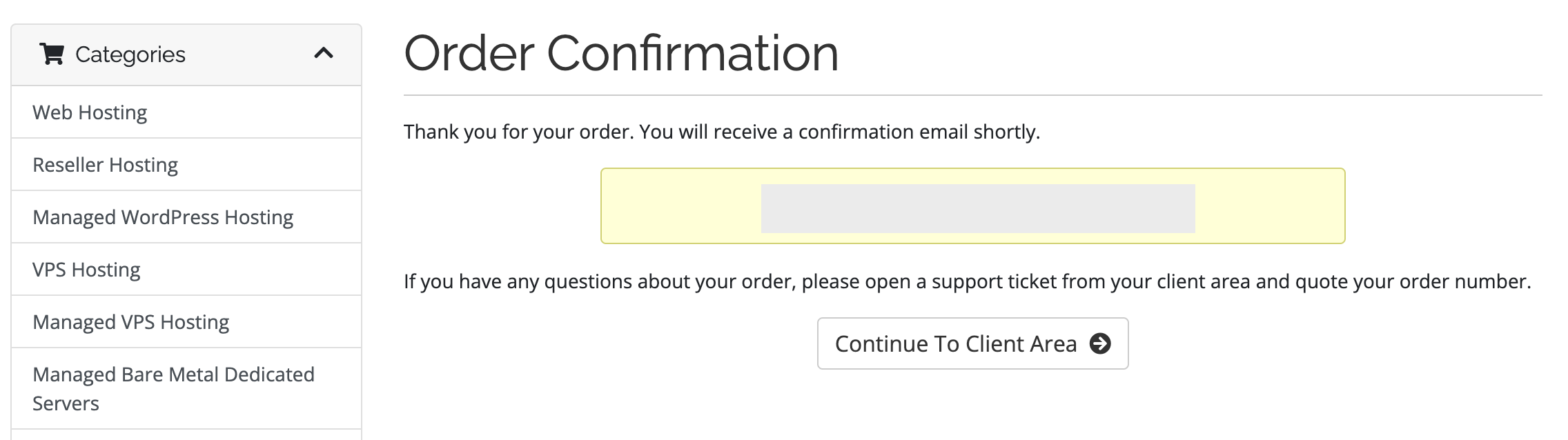 호스팅 구입이 모두 완료되었다. 아래 이미지의 노란색 박스 안에는 주문 번호가 들어있는데, 주문에 대해서 질문이 있는 경우 상담을 할 때 필요한 것 같다. (추측...?)