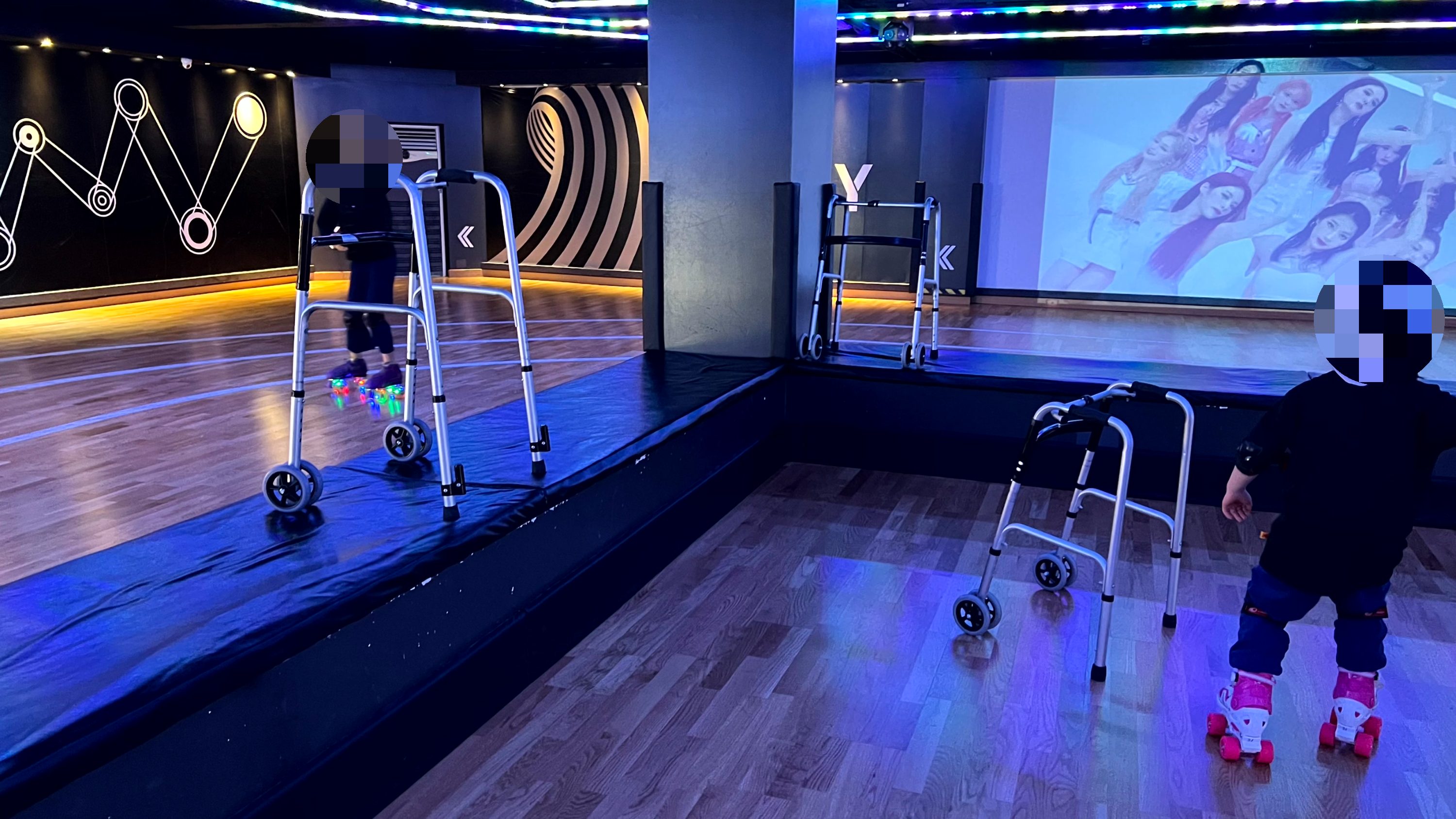 전체적으로 어두운 조명에 한 쪽 벽면에는 요즘 인기 가수들의 뮤직비디오가 끊임없이 흘러나온다. 신나는 케이팝과 함께 롤러 스케이트를 타니 보고만 있어도 덩달아 신이 난다.