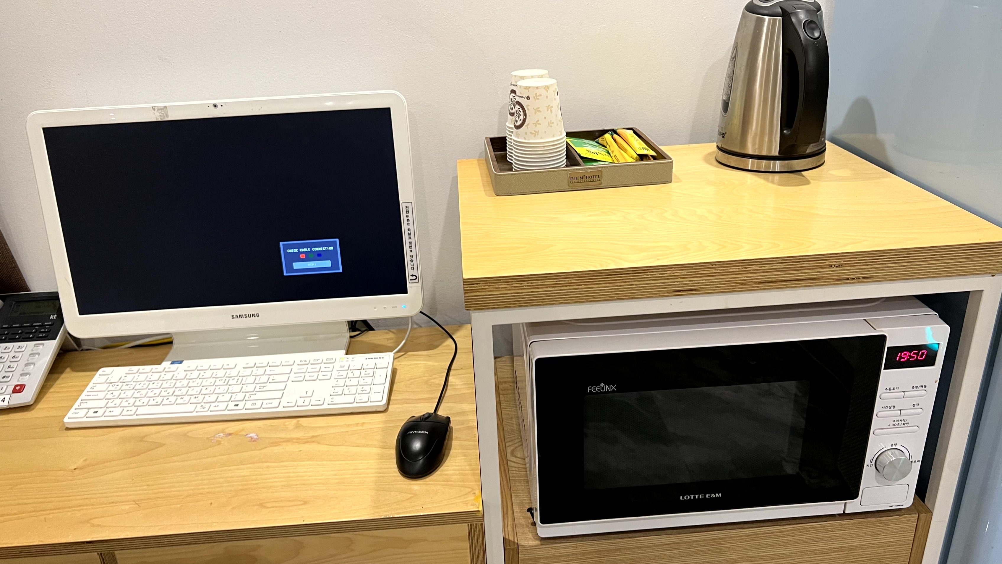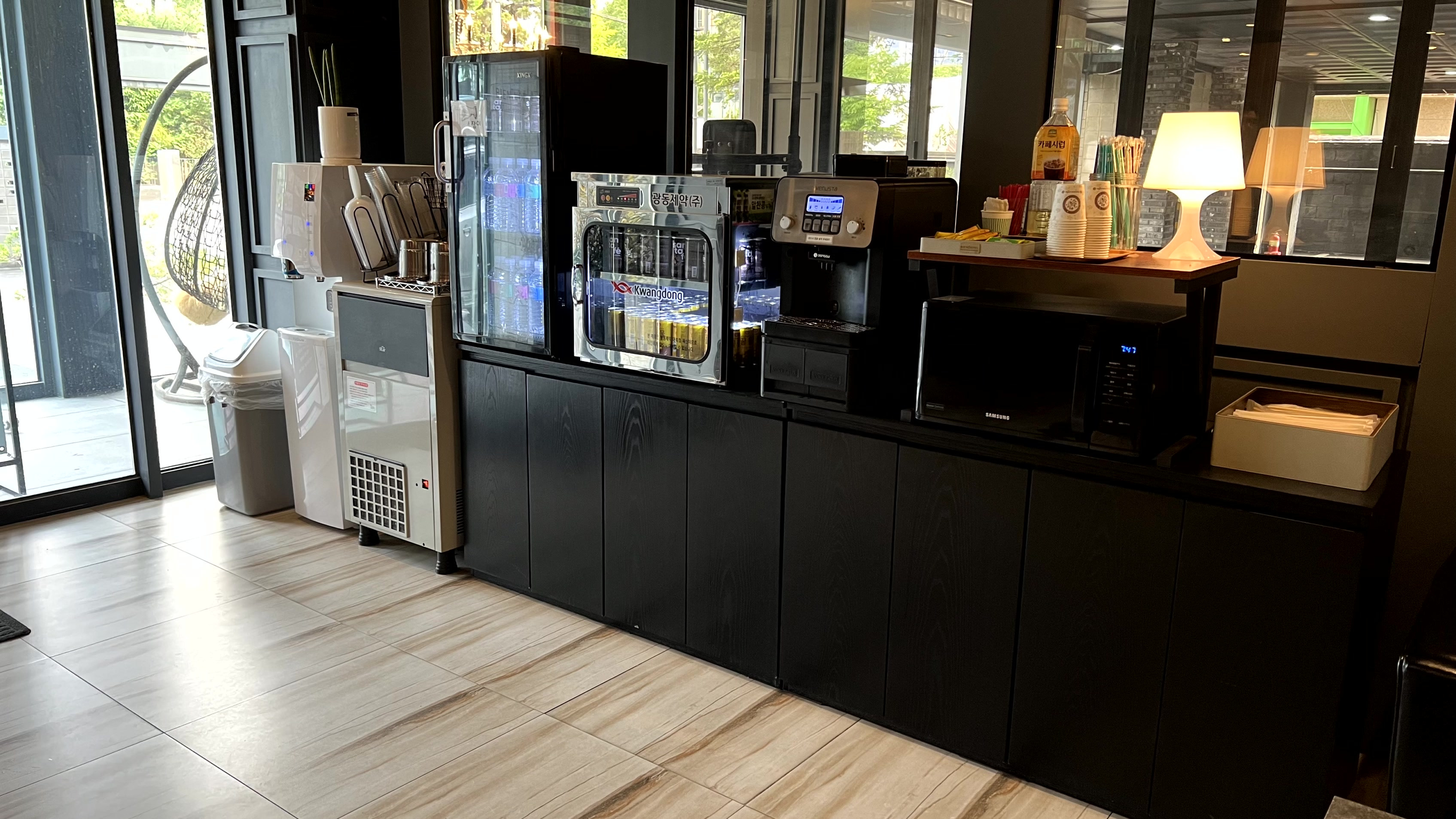 객실에서 아쉬웠던 점은 위생상태가 생각보다는 좋지 않았다는 것이다. 눈에 보이는 부분은 깨끗했지만 구석에는 먼지가 많았고, 전자렌지 내부는 더러워서 열어보고 당황했다.