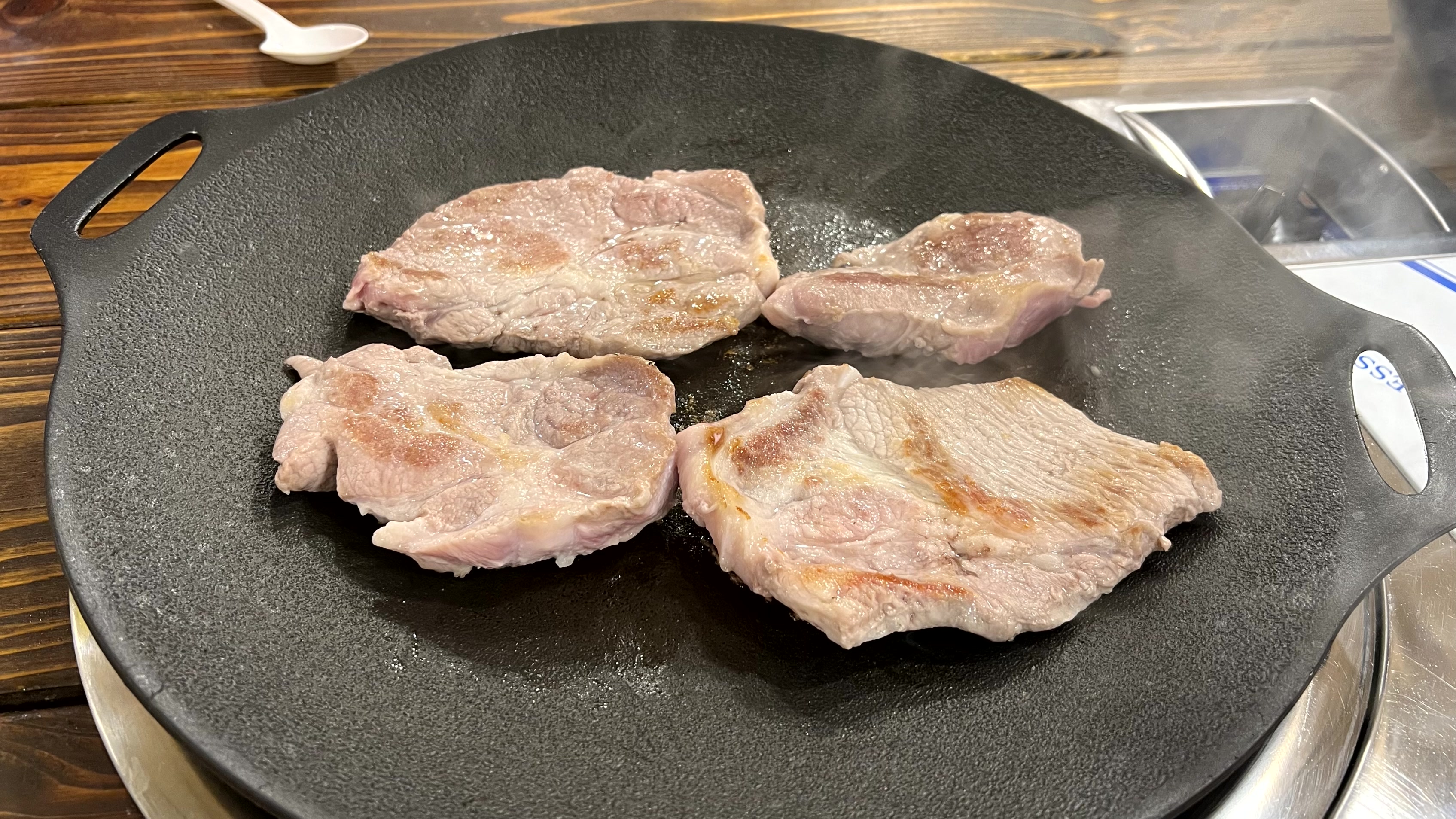 객실 구경을 마치고 배가 고파진 우리는 글램핑장에서 고기를 구워 먹기로 했다. 우리만 단독으로 쓸 수 있는 프라이빗 글램핑장이라니... 다른 사람들과 마주치지 않고, 시간 제약도 없어서, 정말 마음에 쏙 드는 공간이었다. 비도 오고 날이 추워서 걱정했는데 천막 문을 닫으니 바람도 들어오지 않고 나름 따뜻했다.
