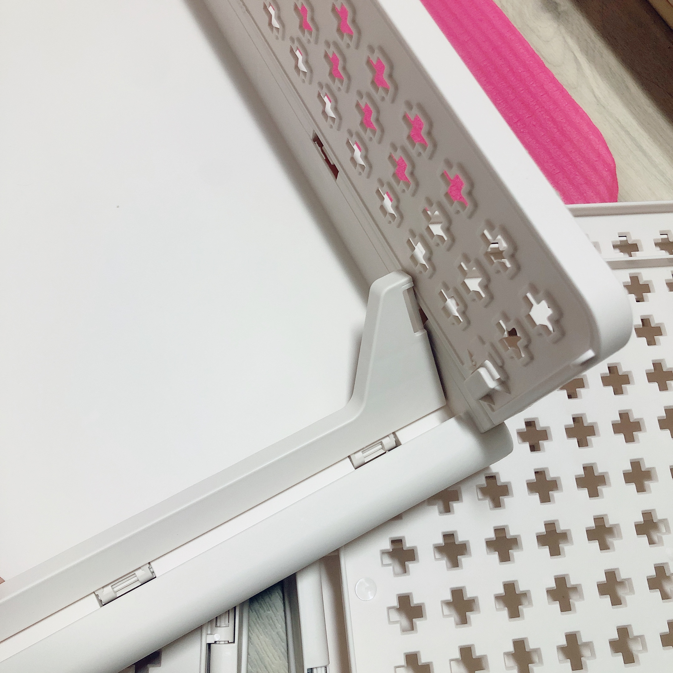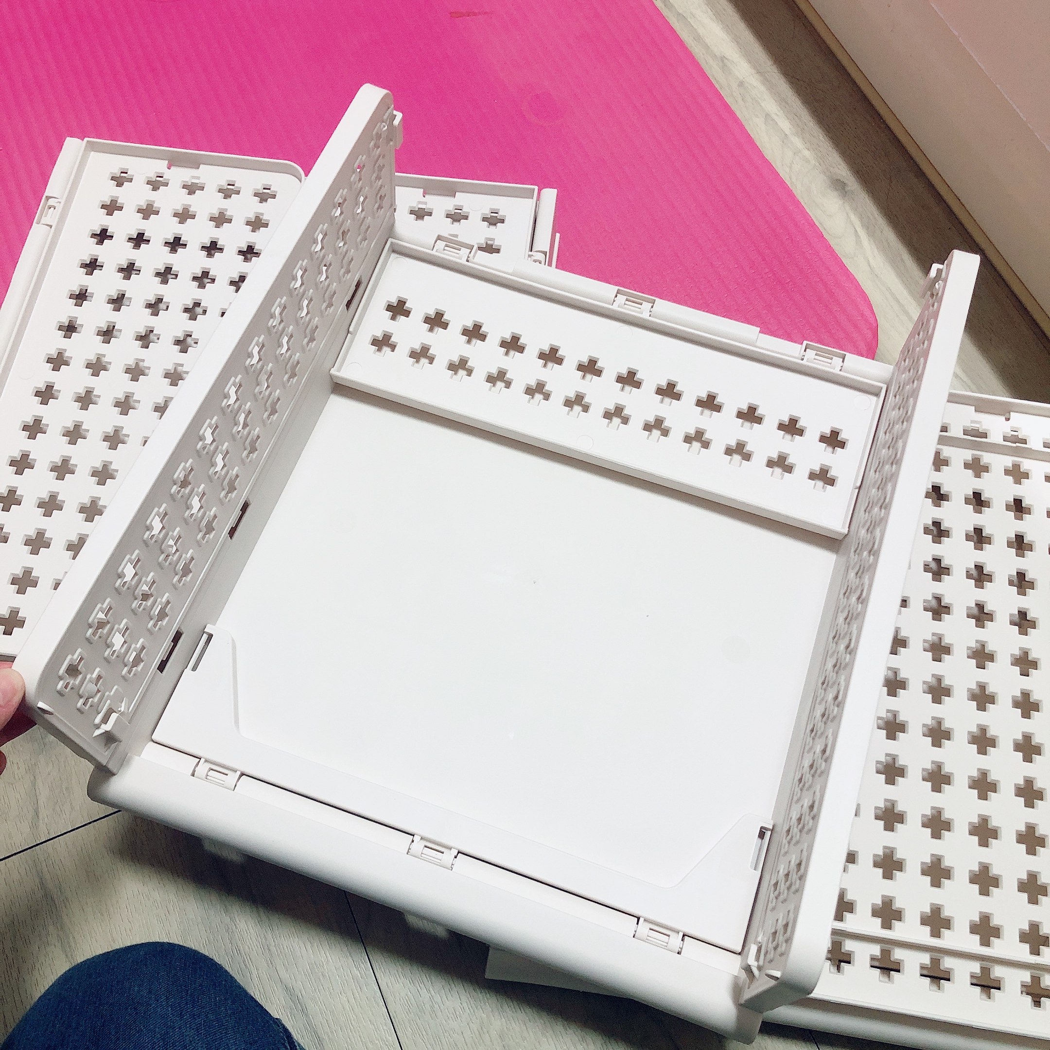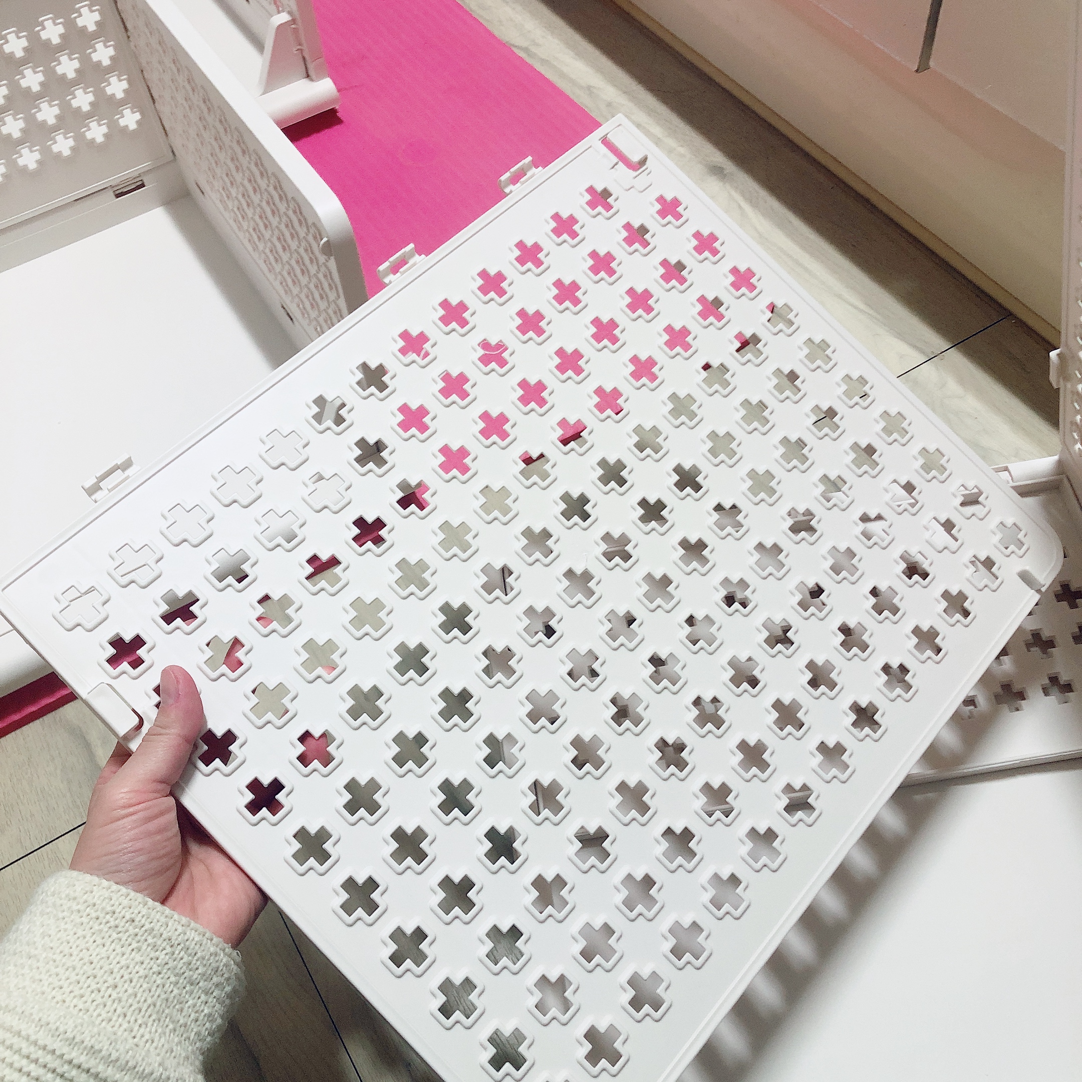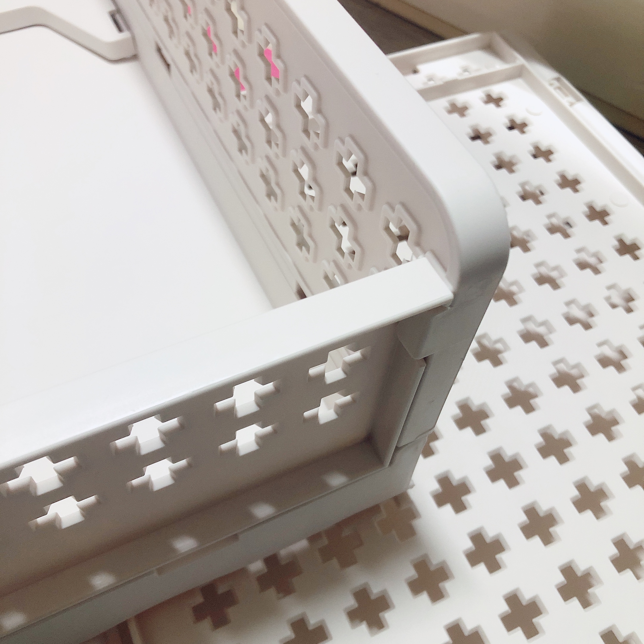 조립하면서 느낀 점은... 두꺼운 플라스틱이 아니라서 내구성이나 지지력이 좋은 편은 아닌 것 같다. 홈이 잘 맞지 않는다거나 하는 부분은 거의 없고 조립 자체는 힘들이지 않고 뚝딱 할 수 있었다. 조립 방법 설명서는 없지만 설명서 따위 필요없을 정도로 초초초 간단하다.