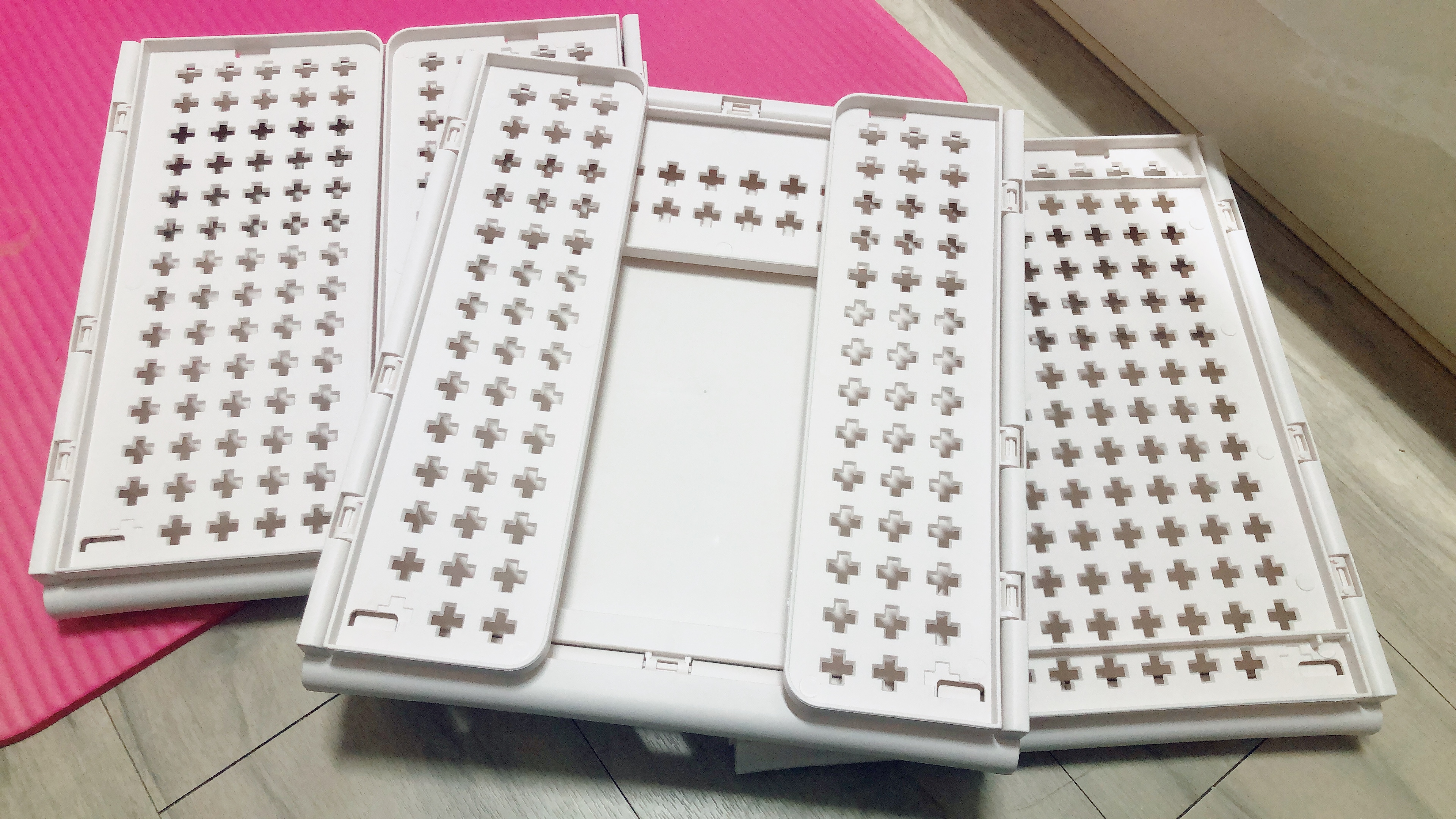 조립하면서 느낀 점은... 두꺼운 플라스틱이 아니라서 내구성이나 지지력이 좋은 편은 아닌 것 같다. 홈이 잘 맞지 않는다거나 하는 부분은 거의 없고 조립 자체는 힘들이지 않고 뚝딱 할 수 있었다. 조립 방법 설명서는 없지만 설명서 따위 필요없을 정도로 초초초 간단하다.