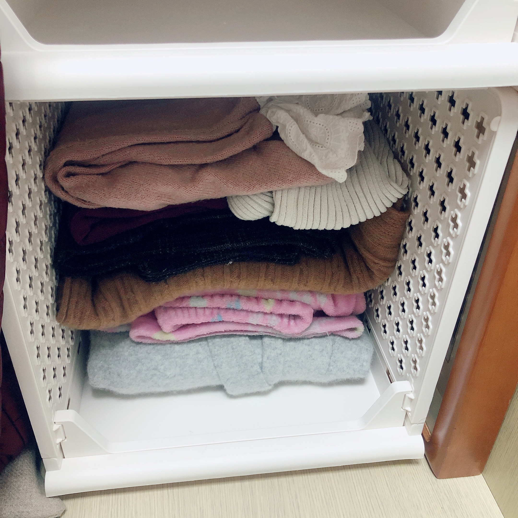 우리집 옷장 사이즈에 정말 찰떡같이 잘 맞는다. 특대형 사이즈는 두께가 있는 겨울 스웨터 등을 보관하기에 적당하고, 대형 사이즈에는 좀 더 얇은 옷, 그리고 중형 사이즈에는 스타킹, 양말, 속옷 등을 보관할 예정이다.