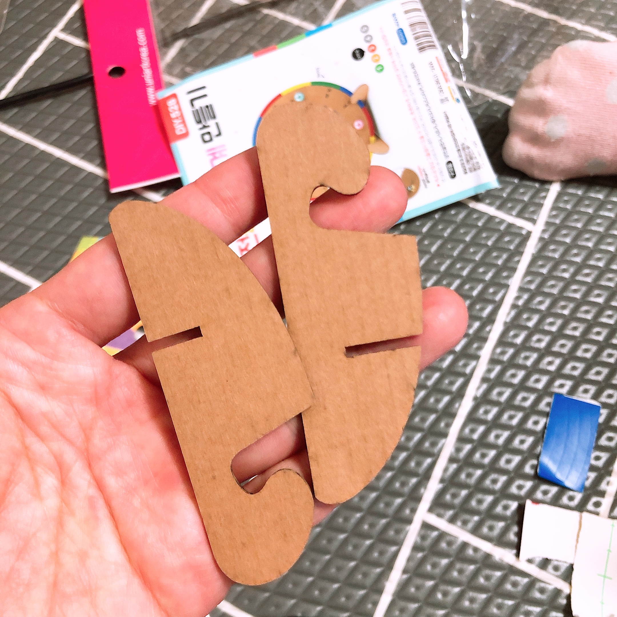 난이도는 1~5단계 중 3단계라고 쓰여 있다. 우리 아이들은 이제 6살, 7살이 되었는데 엄마의 도움을 받아 어렵지 않게 만들 수 있었다. 예전에는 키즈카페에 자주 다녔는데, 코로나 19가 유행하면서 외출을 못하다 보니 집에서 놀이키트 도장깨기를 하고 있는 중이다. 계속 무언가를 만들어서인지 그냥 나이가 들어서인지는 모르지만 (아마도 둘 다) 손재주가 늘고 표현이 섬세해지는 것이 눈으로 보여 뿌듯하고 신기하다.