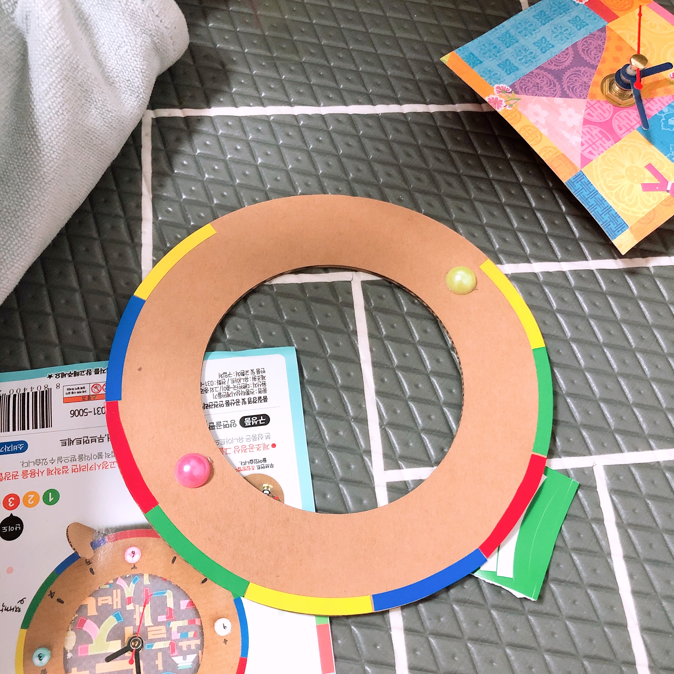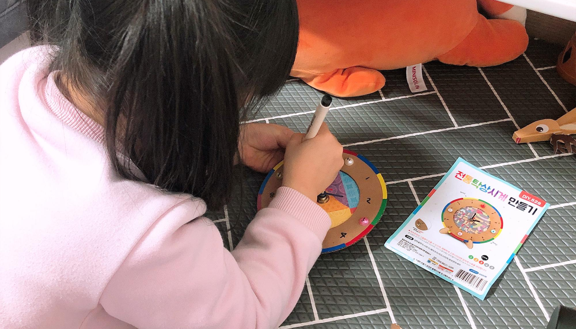 아이들과 전통탁상시계를 만들어 보았다. 지난번에 만들었던 드림캐쳐와 같은 브랜드 제품이다. 구성품이 알찬 유니아트~ 민화샵에 이어 나의 최애 놀이키트 브랜드가 될 것 같다.