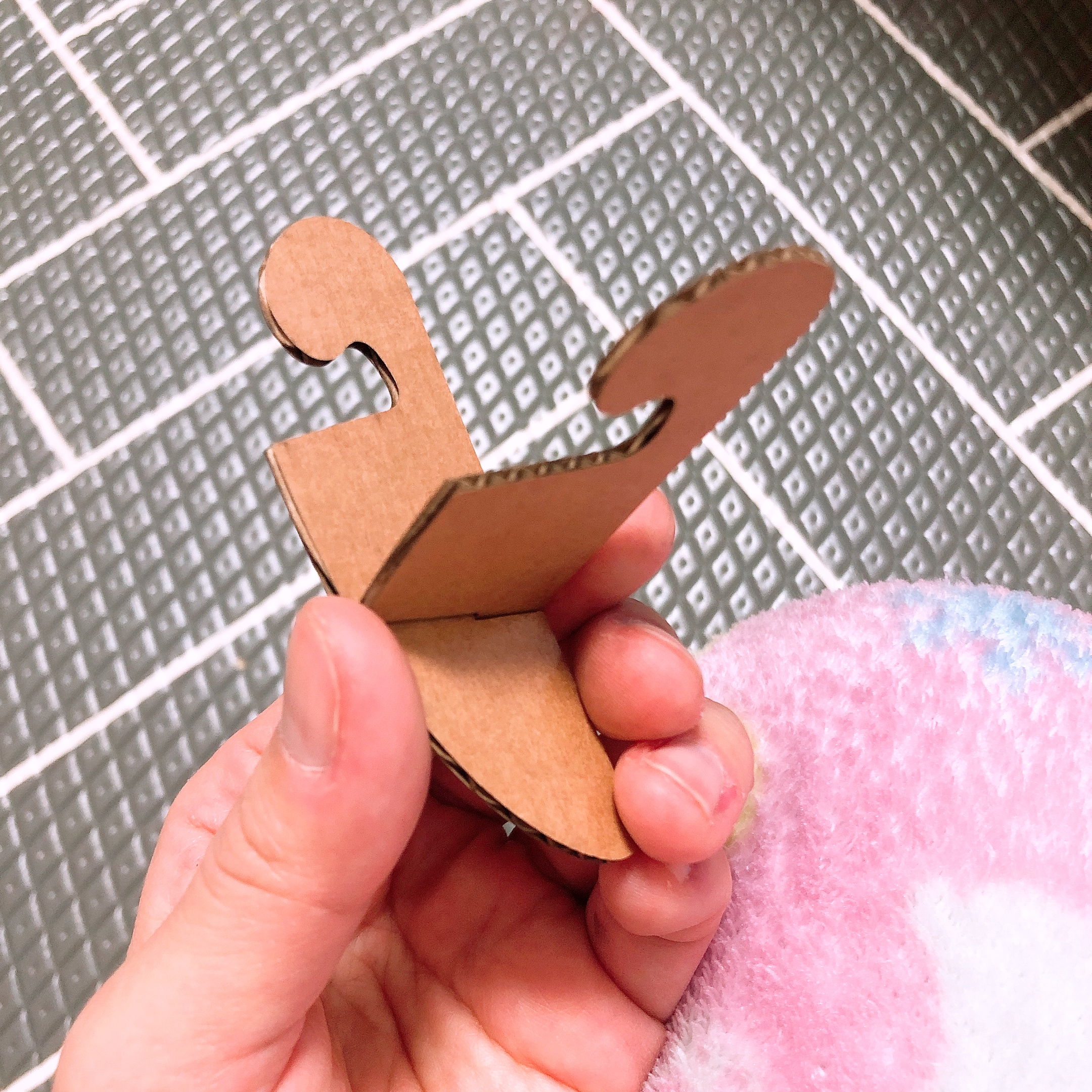 받침대 조각 두개를 교차하여 고정하고 시계 프레임을 올려두면 된다. 세워두고 건드리지만 않는다면 중심을 잘 잡는 편이지만, 좀 더 안정감 있게 사용하고 싶다면 목공용풀 등 접착제를 사용하여 아예 부착해주는 것도 좋은 방법이다.