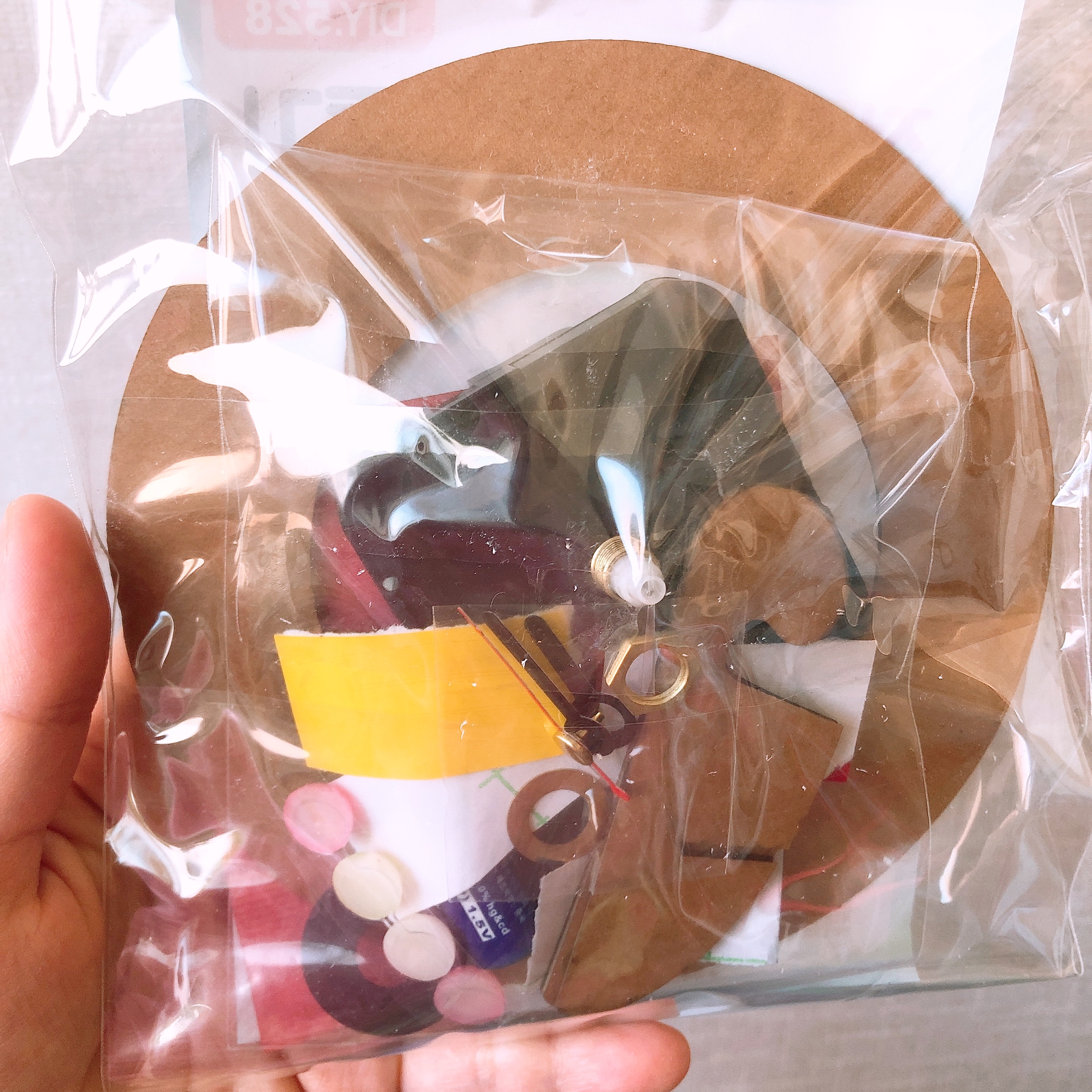 완성된 프레임 중앙에 시계 무브먼트 위치를 잡고 뒷면을 테이프로 붙여 주었다.