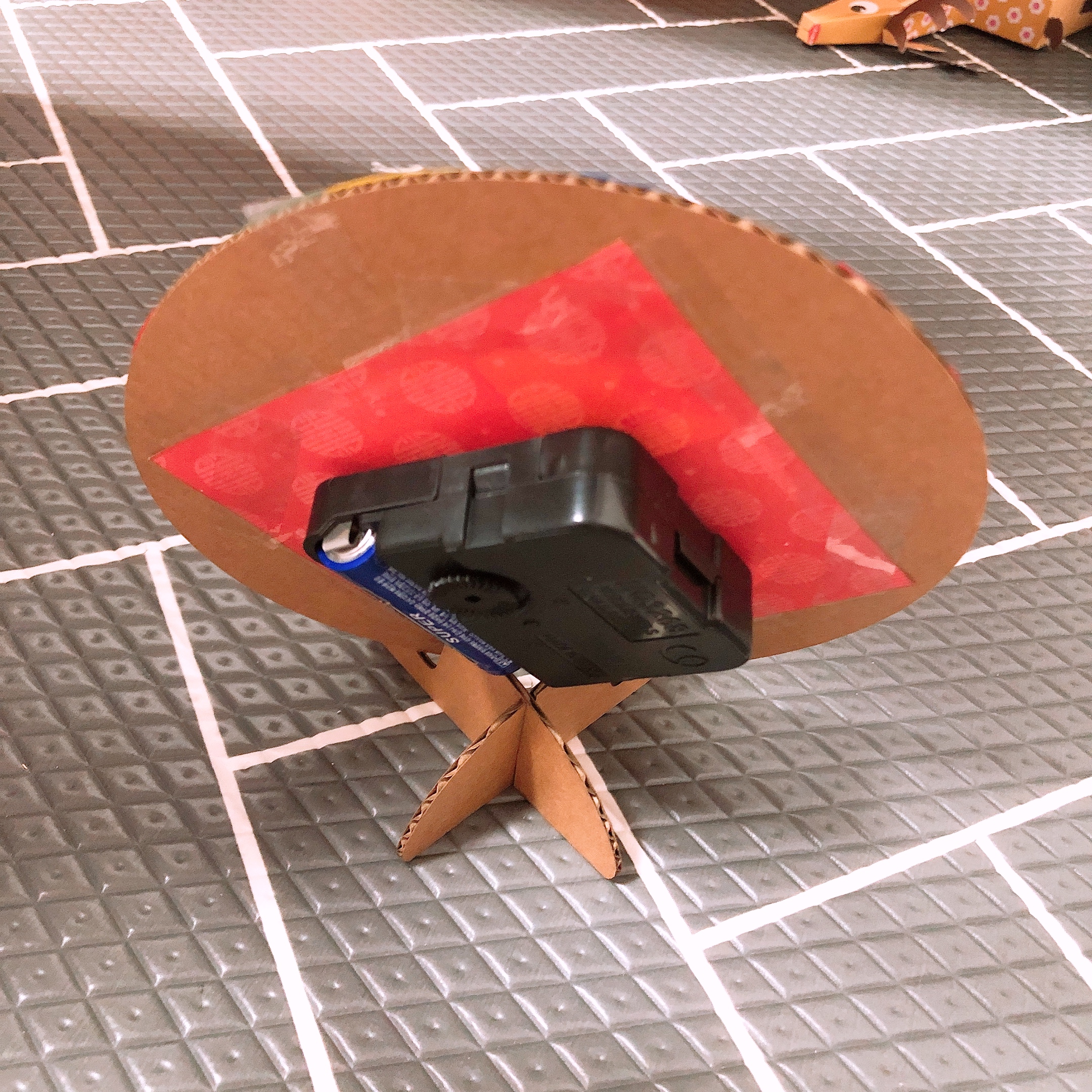 받침대 조각 두개를 교차하여 고정하고 시계 프레임을 올려두면 된다. 세워두고 건드리지만 않는다면 중심을 잘 잡는 편이지만, 좀 더 안정감 있게 사용하고 싶다면 목공용풀 등 접착제를 사용하여 아예 부착해주는 것도 좋은 방법이다.