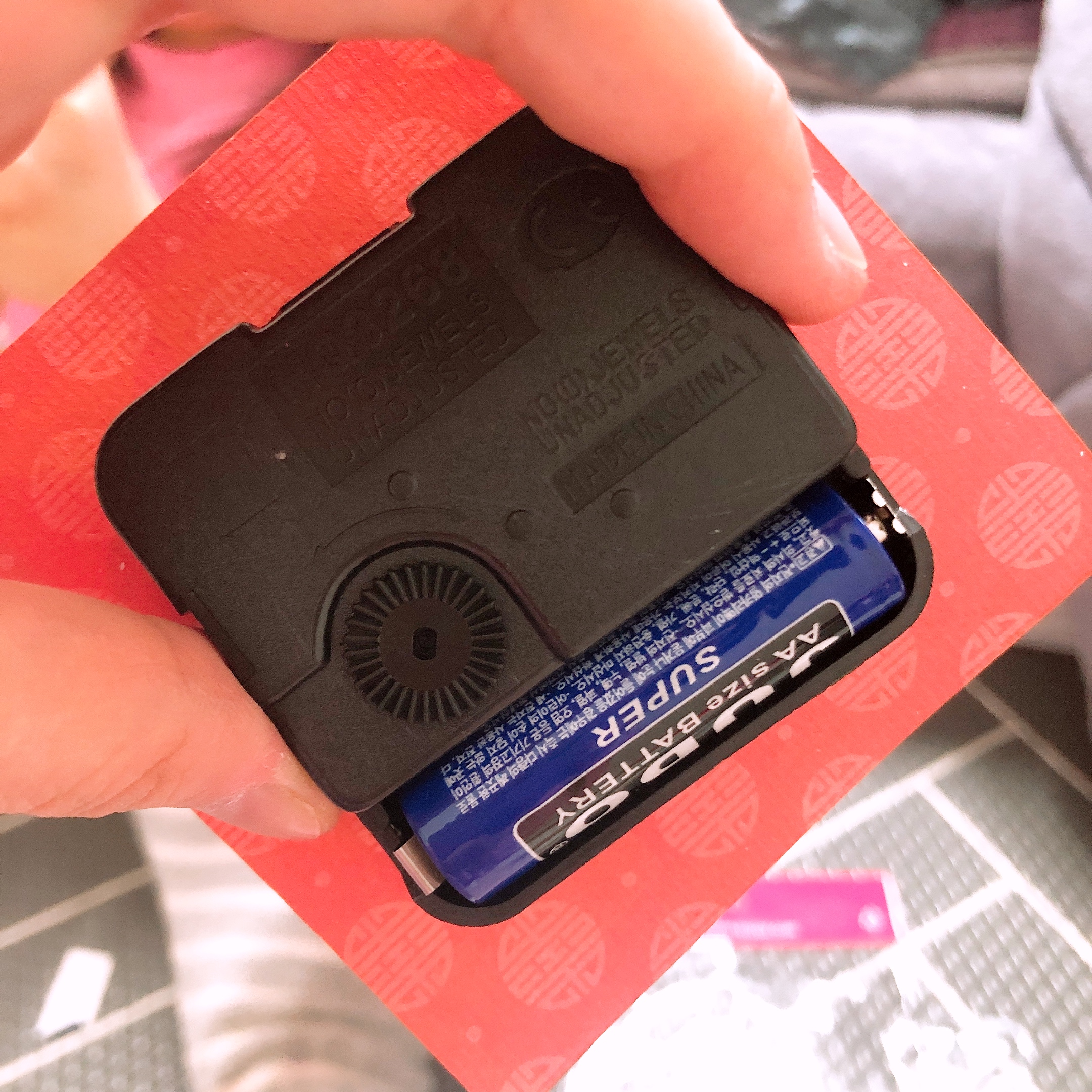 시계 조립을 마친 후 뒷면에 건전지를 넣으면 초침이 가는 것을 확인할 수 있다. 건건지는 AA 타입으로 한 개가 필요하여 키트에 함께 들어있다. (최고!)