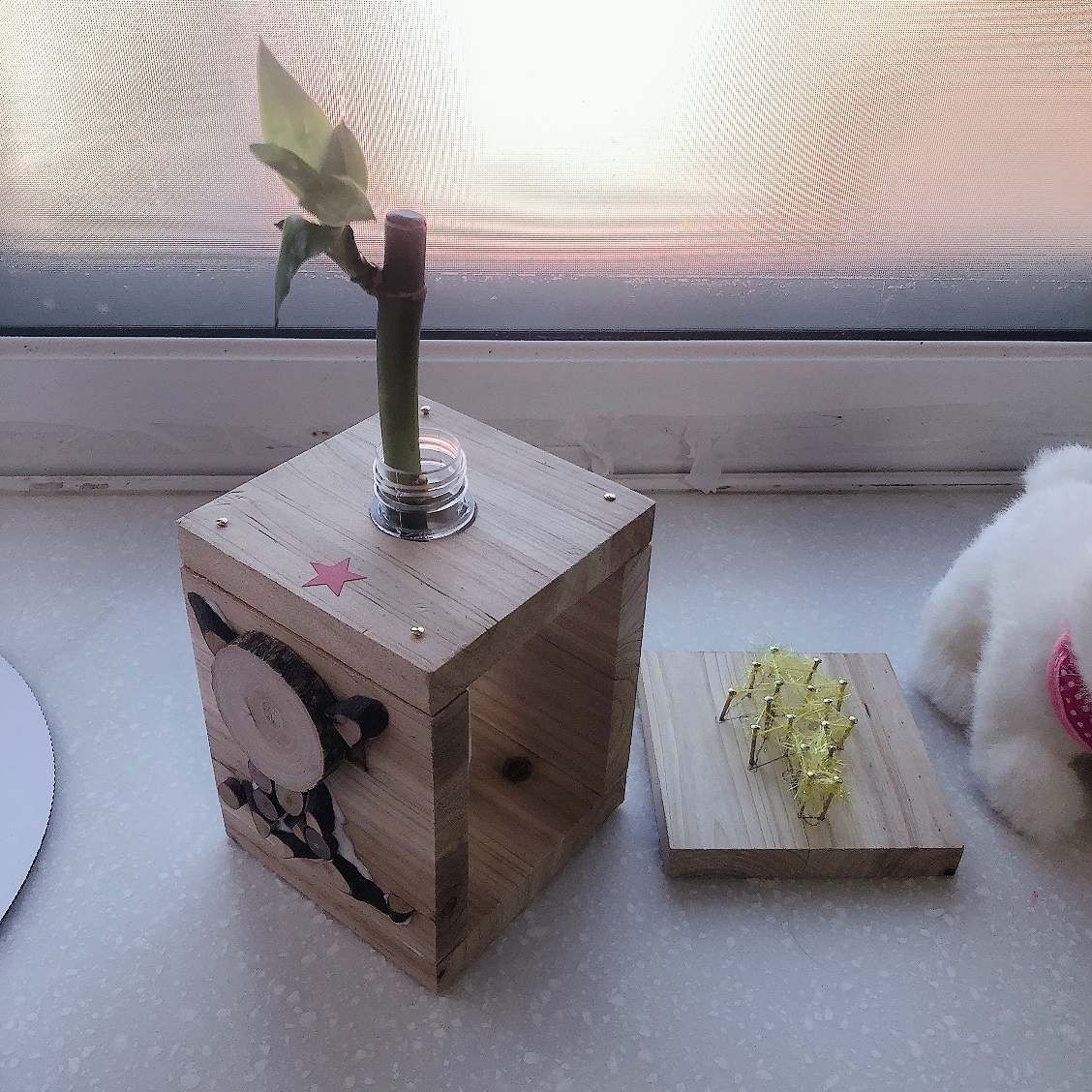 환경친화적인 재료로 실용적인 개운죽 화분과 장식용으로 손색 없는 멋진 스트링아트를 만들어 볼 수 있었던 좋은 기회였다. 개운죽은 지금도 우리 집 창가에서 무럭무럭 자라고 있다.