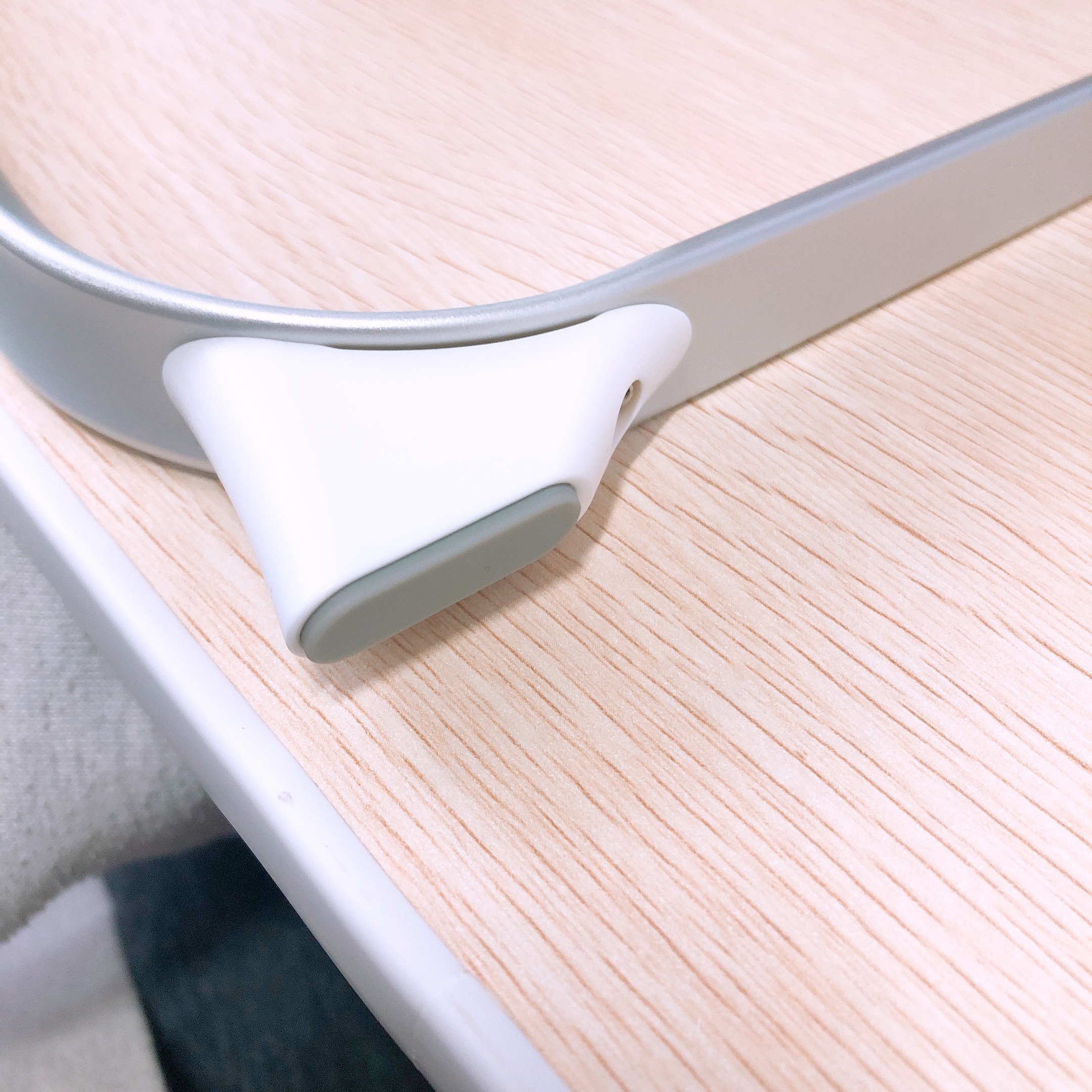 상판이 가로 700mm 인데 양쪽다리 간격은 720mm 로 상판보다 벌어져 있어 더욱 안정감이 느껴진다. 모서리도 둥글게 처리되어 있어 아이들이 사용할 때도 안심이다.
