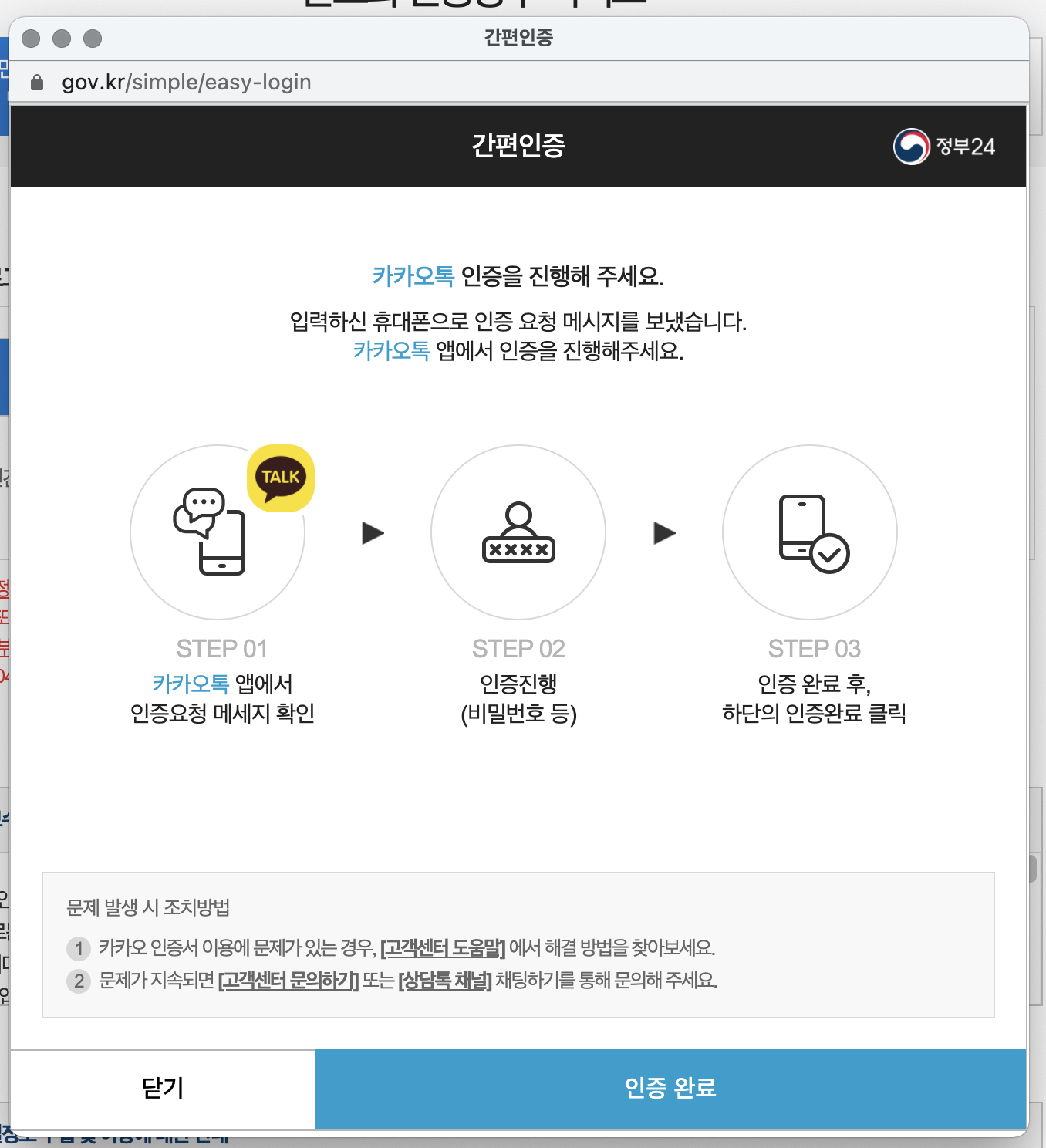 카카오톡에서 '인증하기' 버튼 누르고 비밀번호만 입력하면 바로 로그인이 가능하다. 공인인증서보다 훨씬 더 편해진 것 같다.