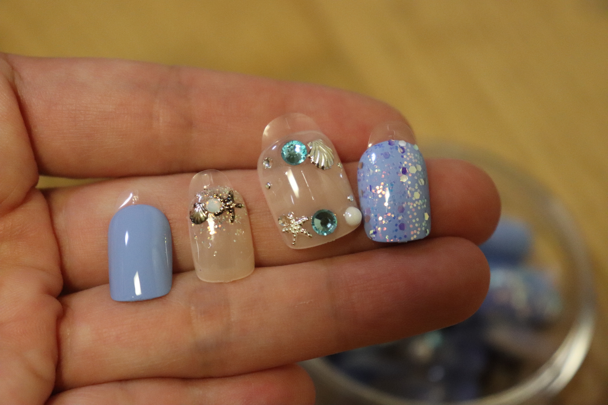 블링블링한 예쁜 손톱이 완성되었다. 바다 여행을 앞두고 있는 분들에게 강추하는 네일팁 디자인이다. 남아있는 나의 네일팁들은 이미 겨울이 되어버렸으므로... 여행 계획도 없으므로... 묵혀 두었다가 내년 여름에 다시 개시하는걸로...!