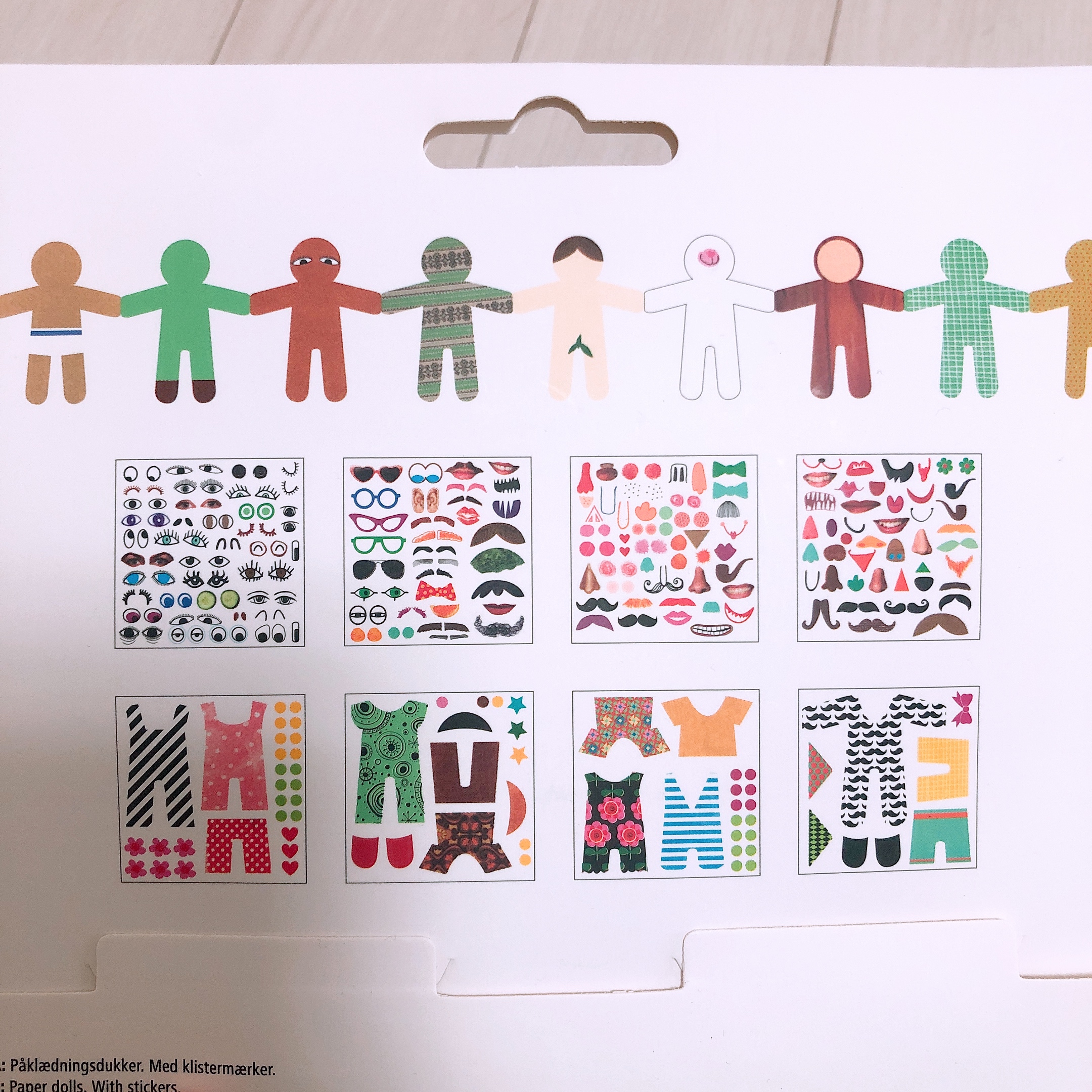알록달록한 9개의 종이 인형과 (그런데 왜 모두 손을 잡고 있을까?) 8장의 스티커로 구성되어 있다.