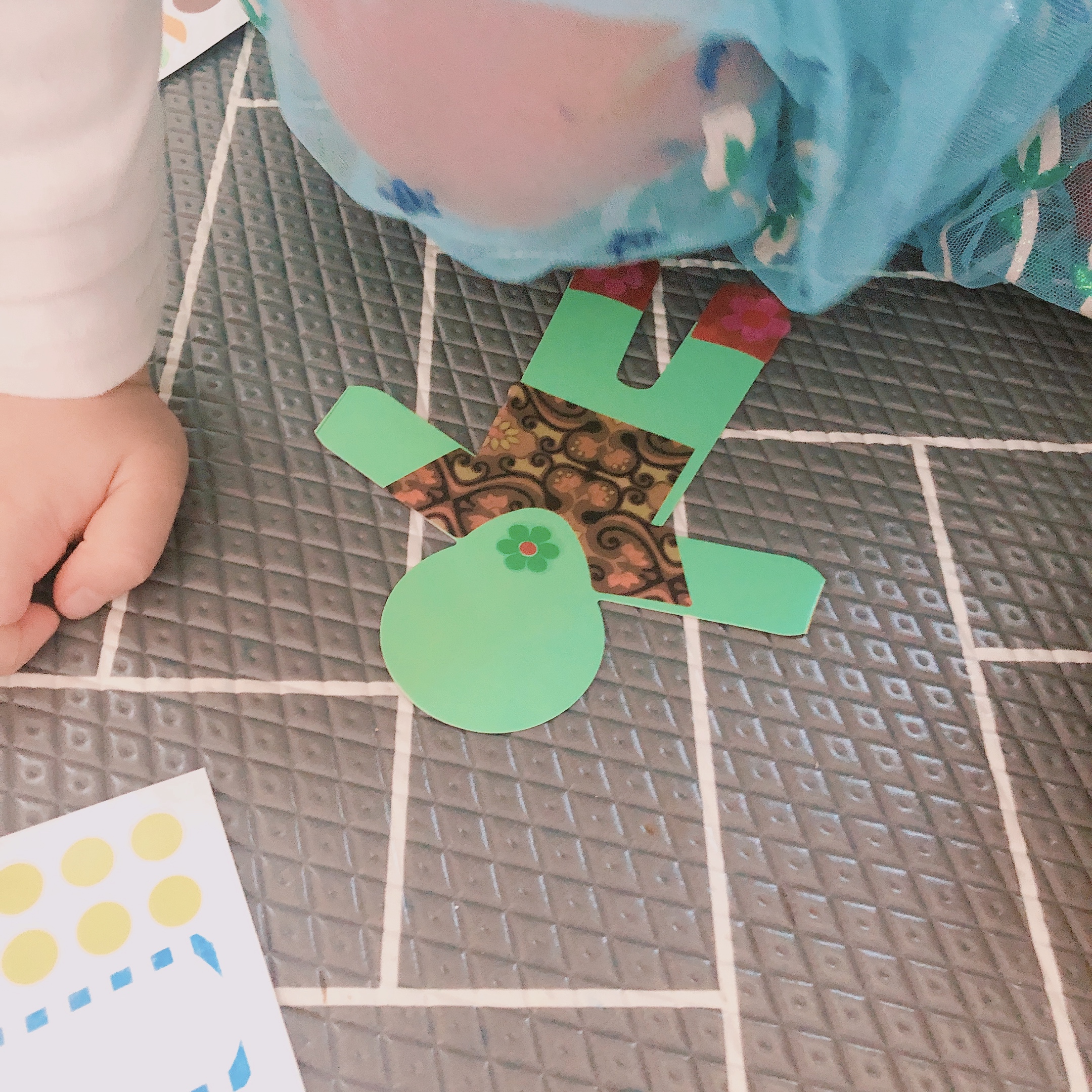 알록달록한 9개의 종이 인형과 (그런데 왜 모두 손을 잡고 있을까?) 8장의 스티커로 구성되어 있다.