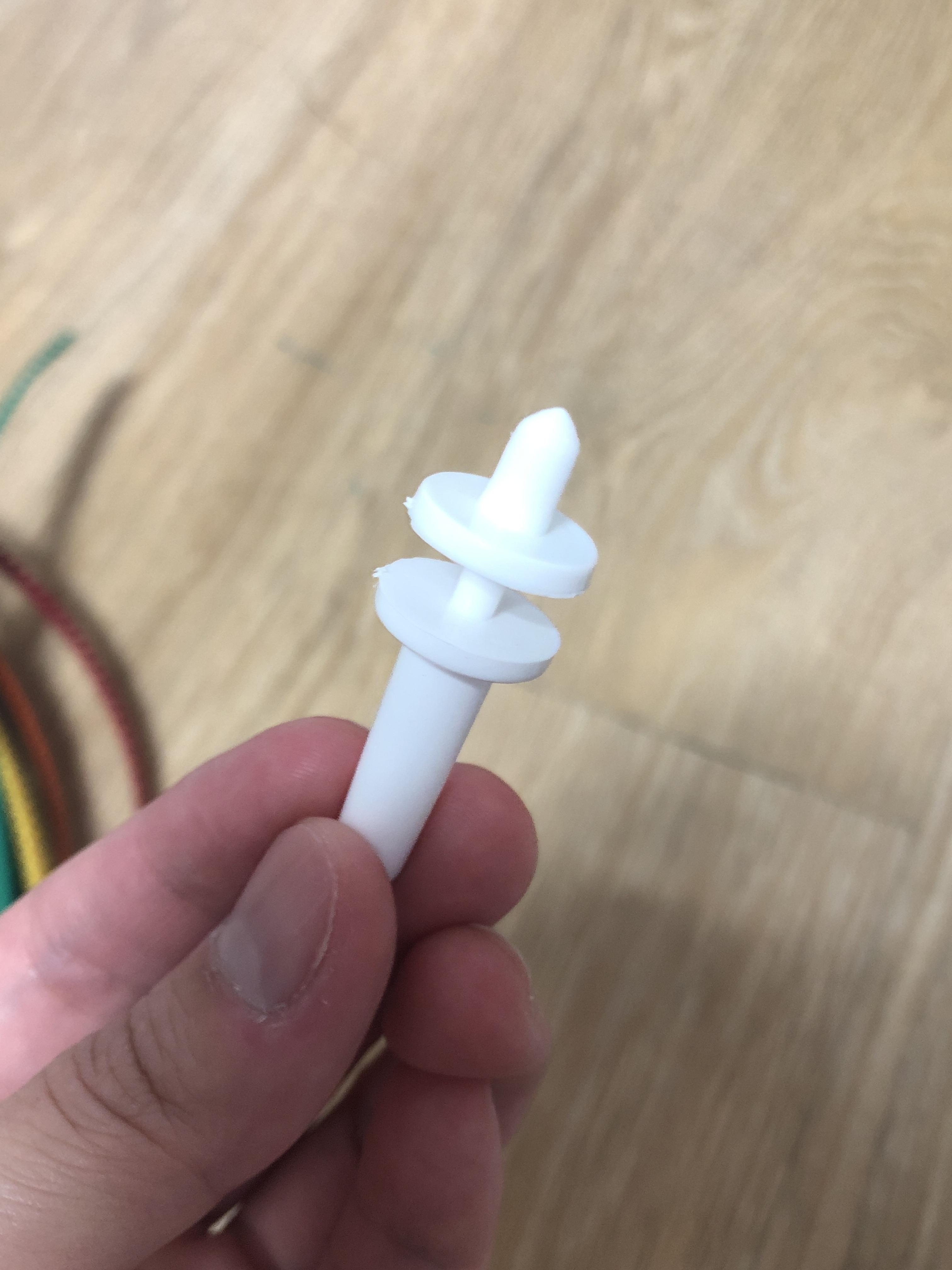 띠 골판지를 다 감았다면 팽이 중심을 끼워 맞춘다. 헐겁다면 본드칠을 해 주면 된다. 그냥 끼우니 팽이 아래가 자꾸 분리되어서 나는 목공용 풀을 이용해서 고정해 주었다.