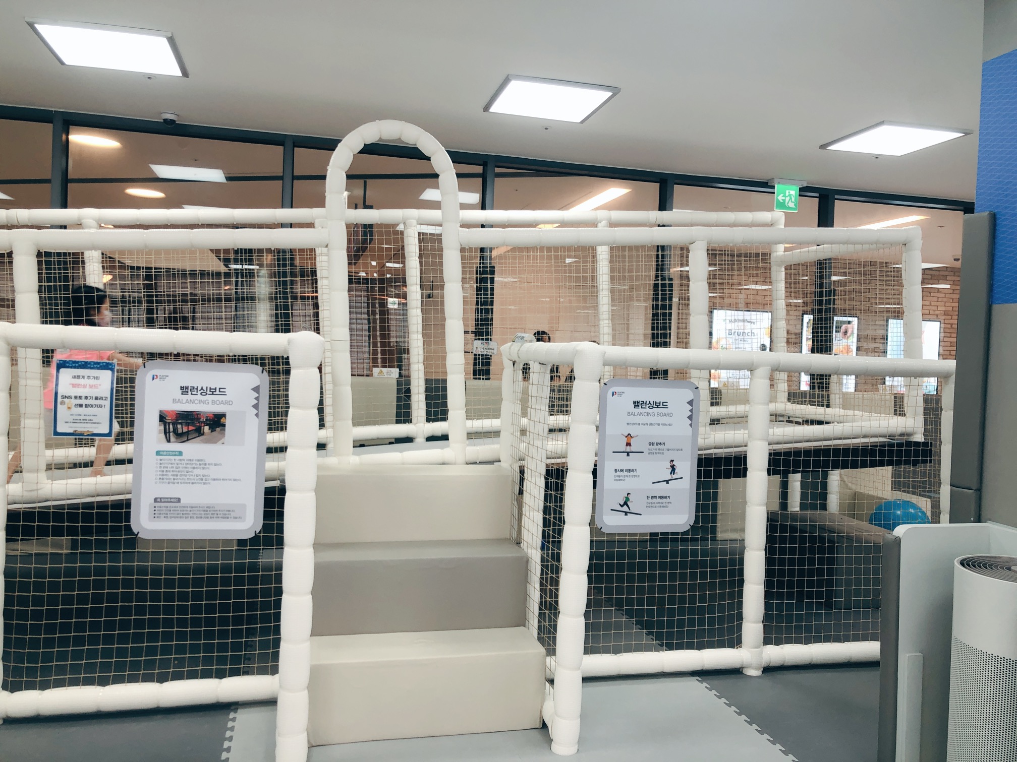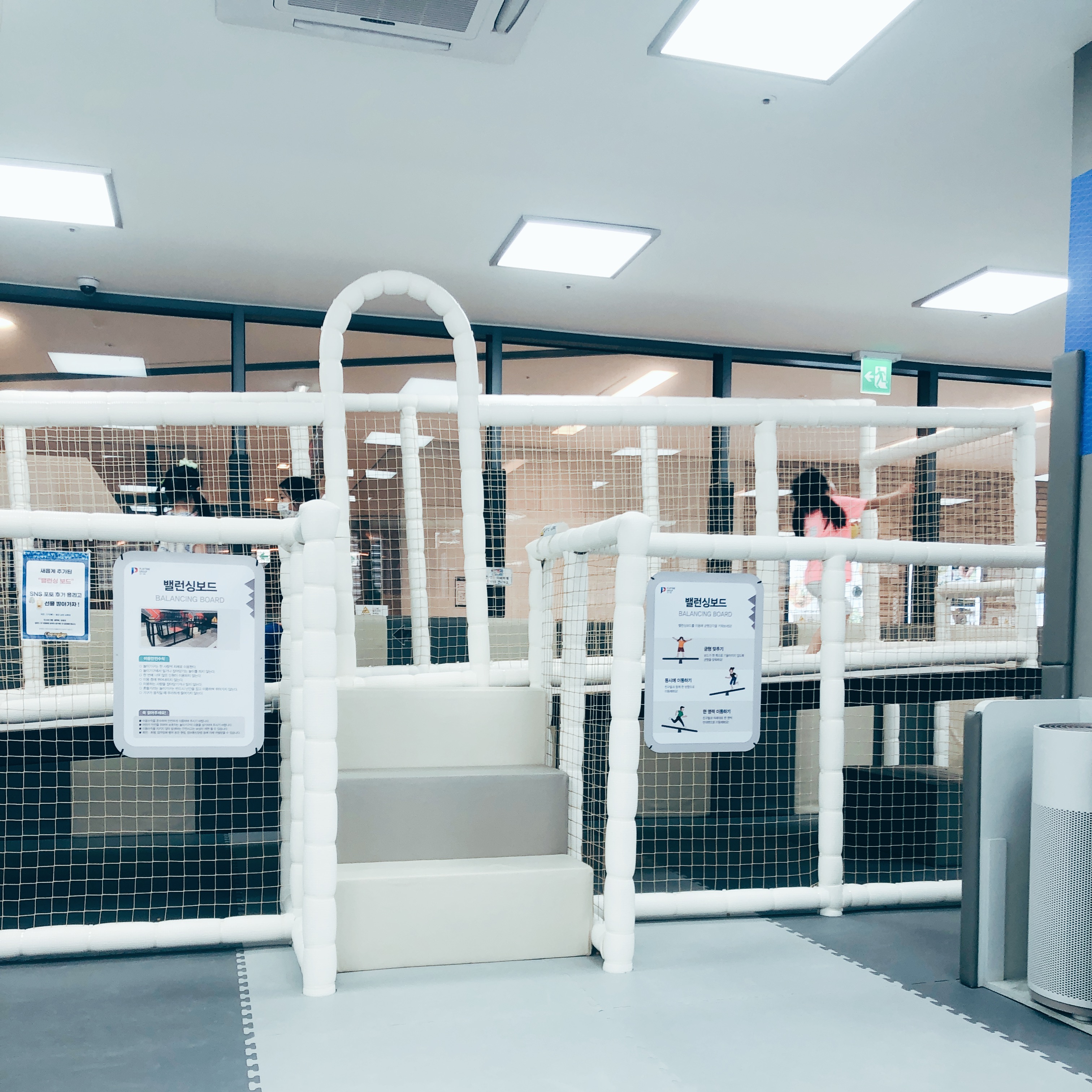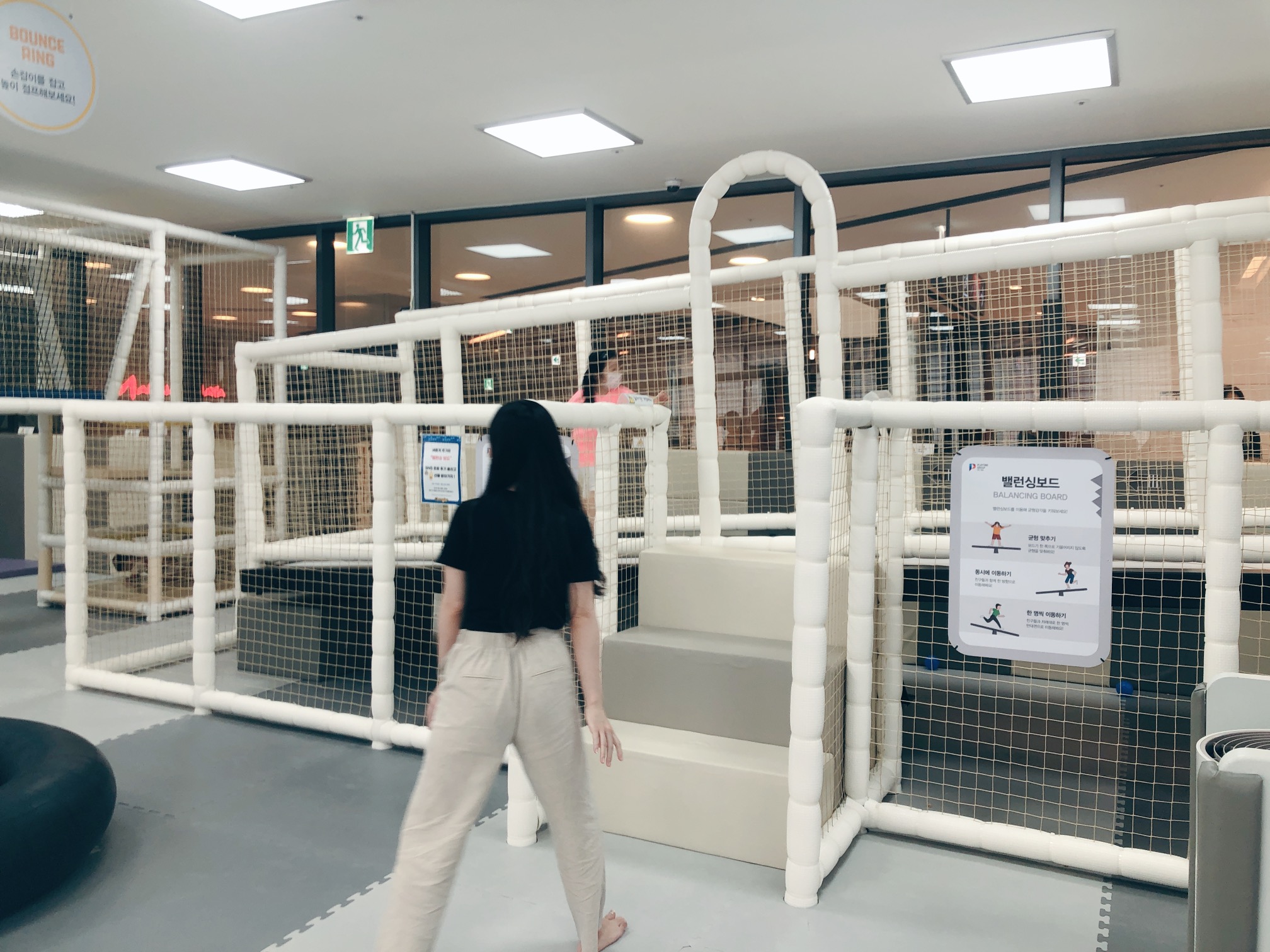 이건 새로 생긴 밸런싱보드라고 하는데, 시소처럼 더 무거운 쪽으로 기울어 진다. 수평을 만들기 위해 중심을 잡아보기도 하고 이리저리 뛰어보기도 하고, 운동과 무게중심을 이해하는 데 도움을 주는 아주 유용하고 신기한 놀이시설이었다. 궁금해서 나도 한번 타봤는데 넘나 재밌는 것...ㅋㅋㅋ