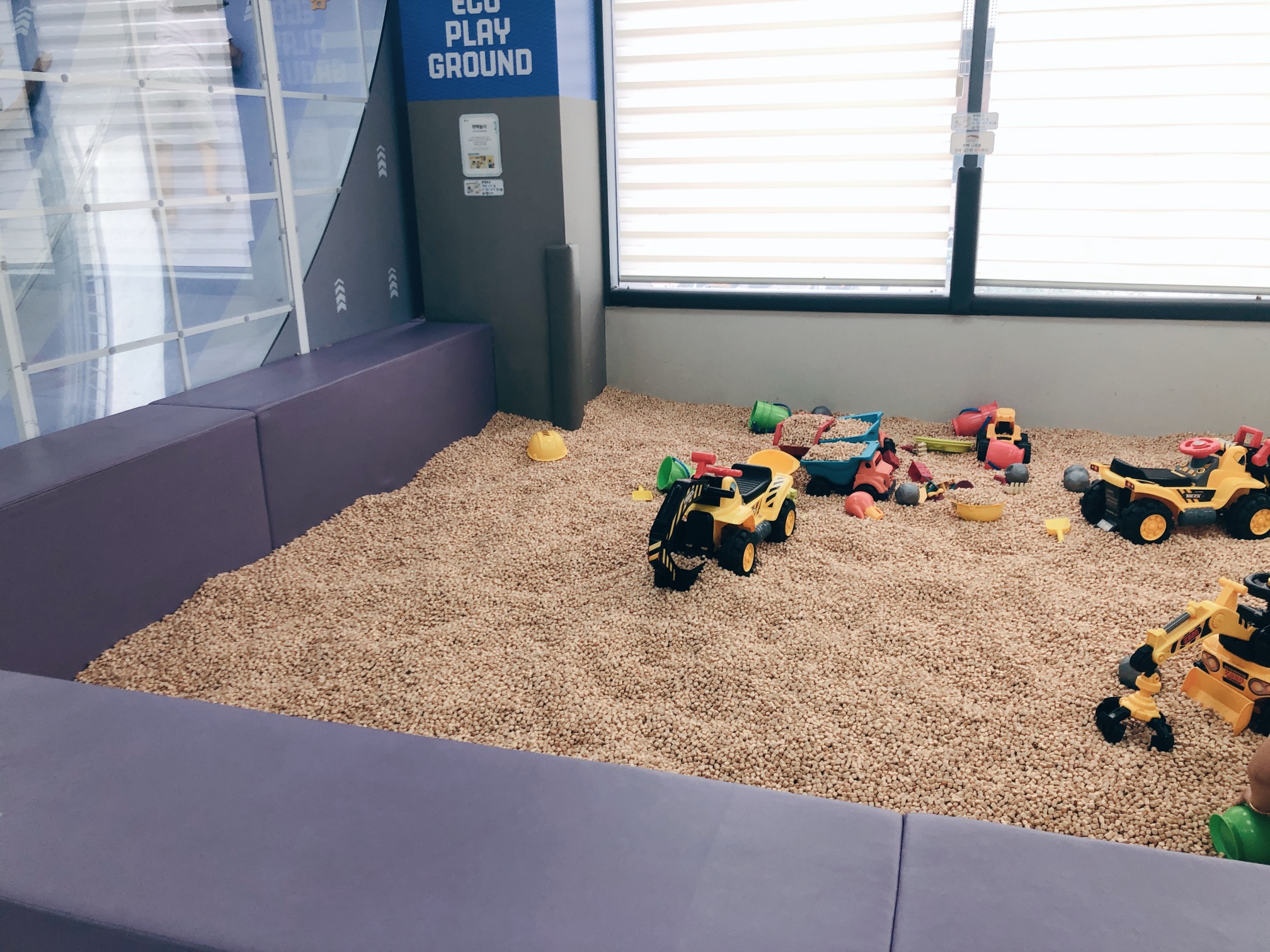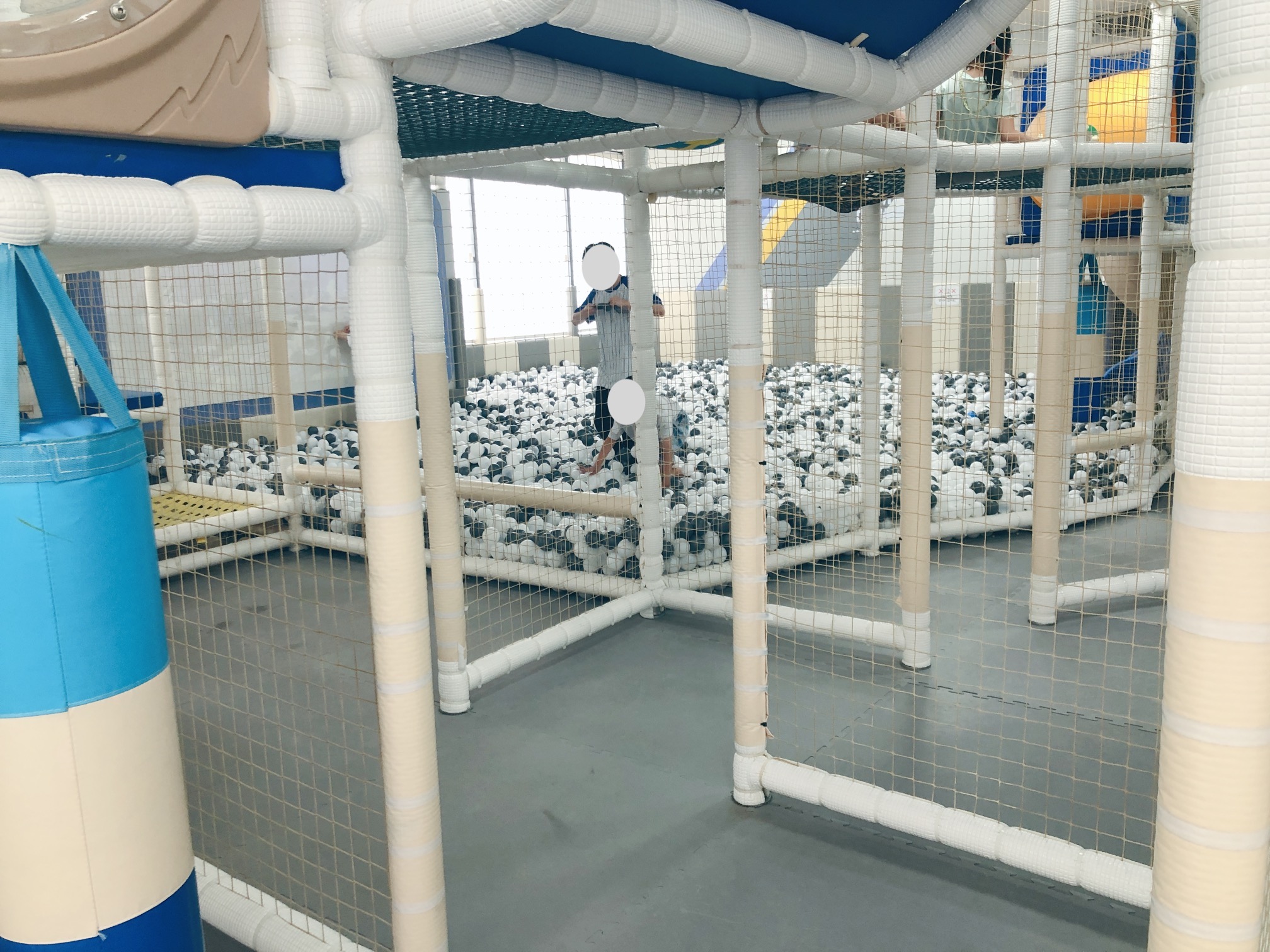 정글짐 뒤쪽으로 이이지는 볼풀장에서는 스크린에 공을 맞추는 게임도 가능하다. 회색, 하얀색, 투명색 볼풀들 사이에 파란색 볼풀이 2~3개 정도 섞여 있었는데, 둘째는 이게 마음에 들었는지 거의 대부분의 시간을 볼풀장에서 보냈다.