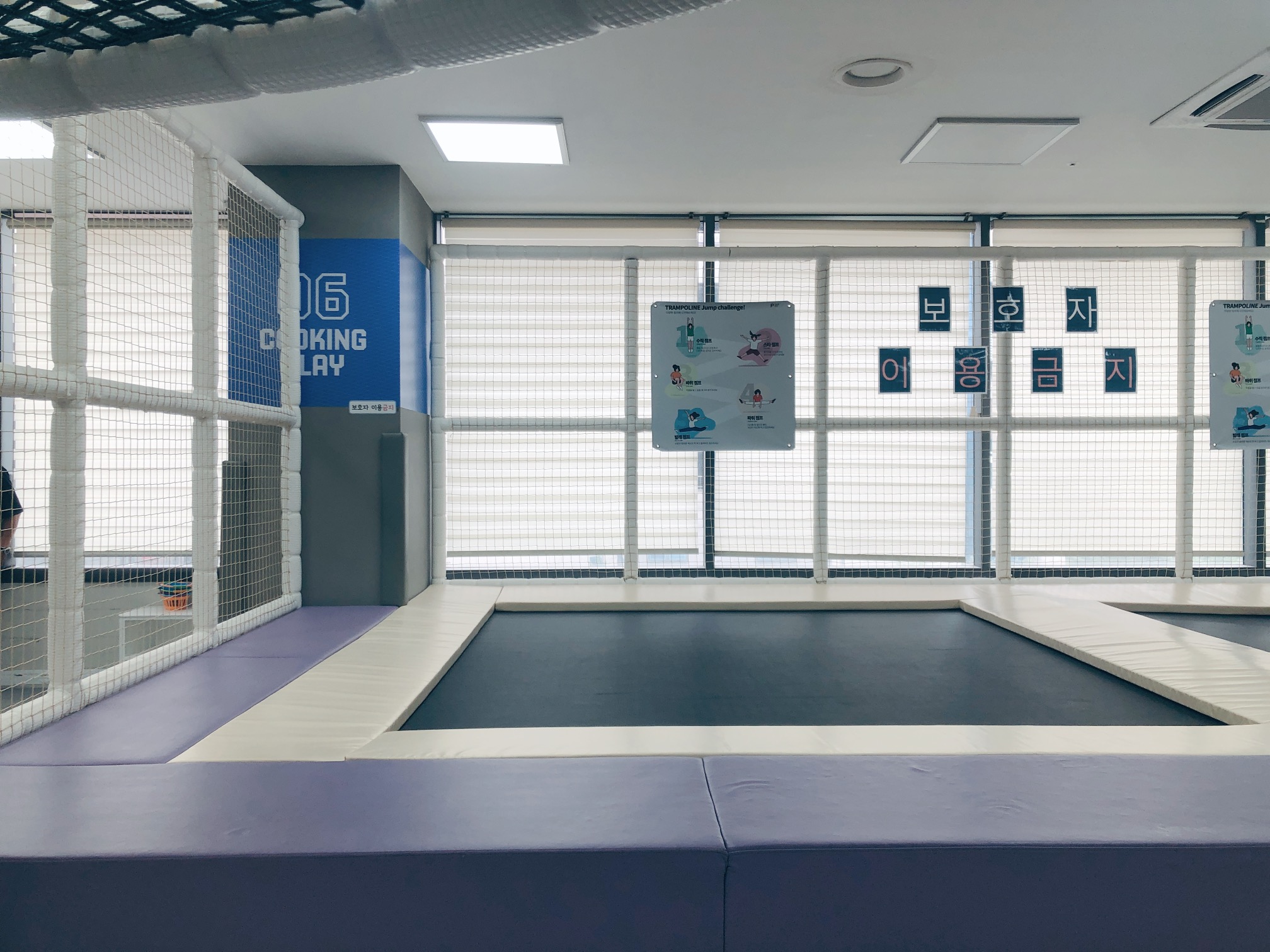 역시 키즈카페라면 없어서는 안되는 방방이 트램폴린! 첫째가 방방이를 너무 좋아해서, 우리 집에선 방방이 없는 키즈카페는 방문 리스트 제외다. 챔피언 키즈카페 광교점 방방이는 규모가 크지는 않고 두개가 나란히 붙어있는 구조인데 아이들이 뛰어 놀기에는 충분한 사이즈이다. (보호자는 이용 금지)