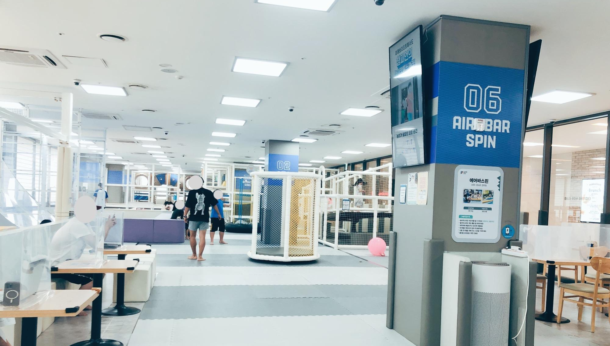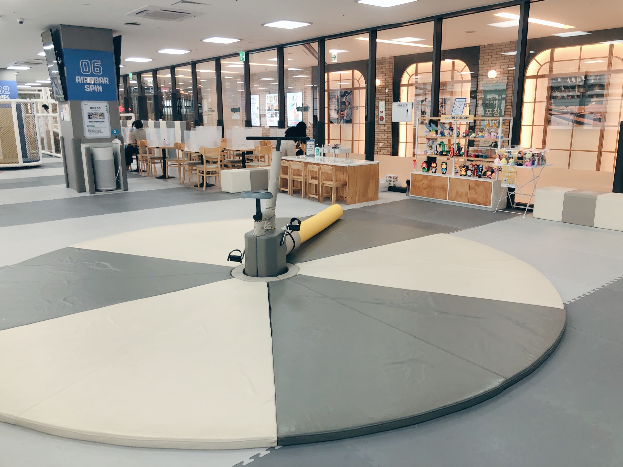 신발을 보관하고 돌아서면 바로 보이는 이것은 '에어바스핀'이다. 가운데서 자전거를 타면 길다란 바가 빙글빙글 돌아가는데 아이들은 바를 피해 달리거나 혹은 바를 마주보고 서서 점프하여 줄넘기처럼 뛰어 넘는다. 한번도 직접 해보지 않았지만 실제로 하면 꽤 스릴이 넘치는지 아이들은 소리를 지르고 땀이 날 때까지 열심히 빙글빙글 돈다.
