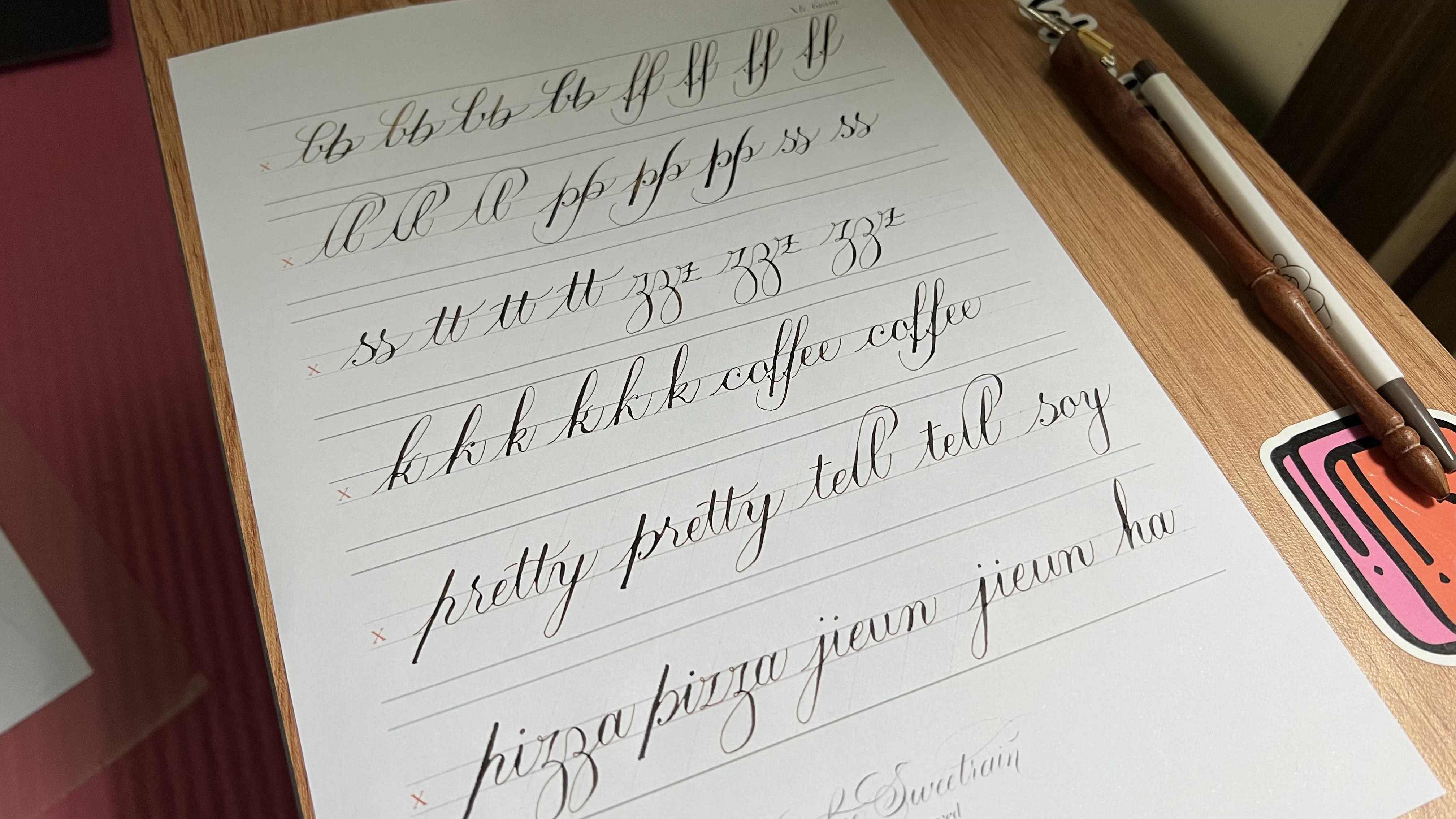잠이 오지 않는 밤, 혼자서 펜촉으로 종이에 끄적끄적 카퍼플레이트 연습을 했다. 이번에는 소문자 더블 레터 연결하는 방법에 대해서 배웠다. 베리에이션과 플러리싱은 나에게는 아직 너무 어려운 영역이라... 예쁘게 꾸미고 싶은 욕구를 잠시 내려놓고 기본 모양에 충실하기로 한다. (마인드 컨트롤 너무 어렵...)