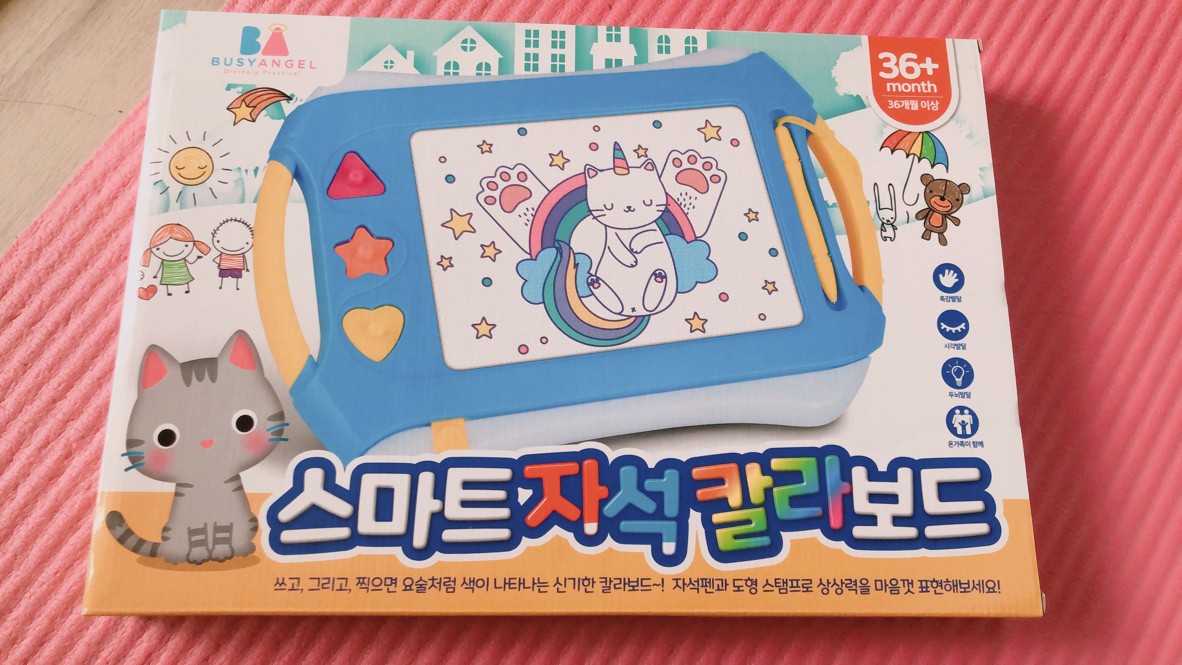 그림 그리기, 글씨 쓰기를 좋아하는 유아에게 손에 묻지 않고 반영구적으로 사용할 수 있는 칼라보드 자석칠판을 추천한다. 어린이날 선물이나 생일 선물로 주어도 좋을 듯 하다.