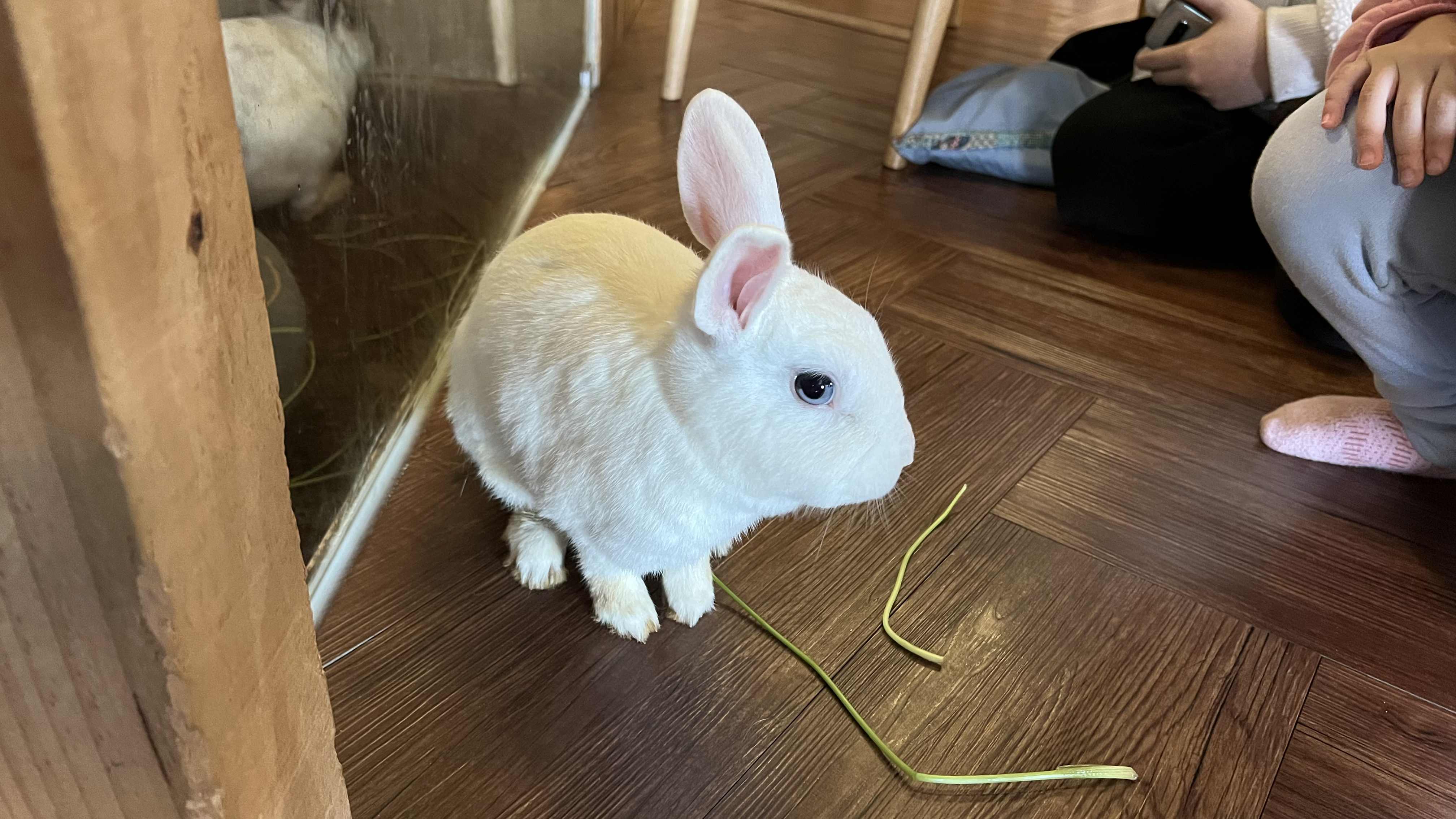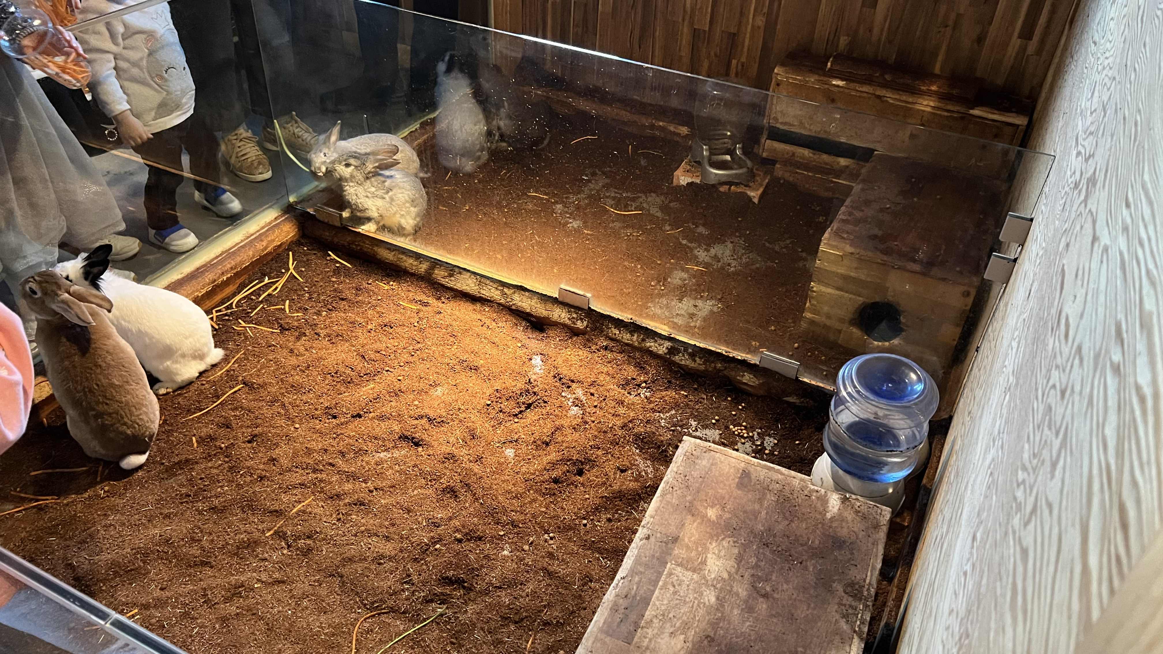 햄스터도 있었는데 자는 중이어서 만나지는 못했다. 햄스터는 야행성 동물이라서 관리자의 지도가 있어야 만져볼 수 있다고 한다. 가볍게 카페 구경을 마치고 이제 본격적으로 토끼에게 먹이주기 시작!