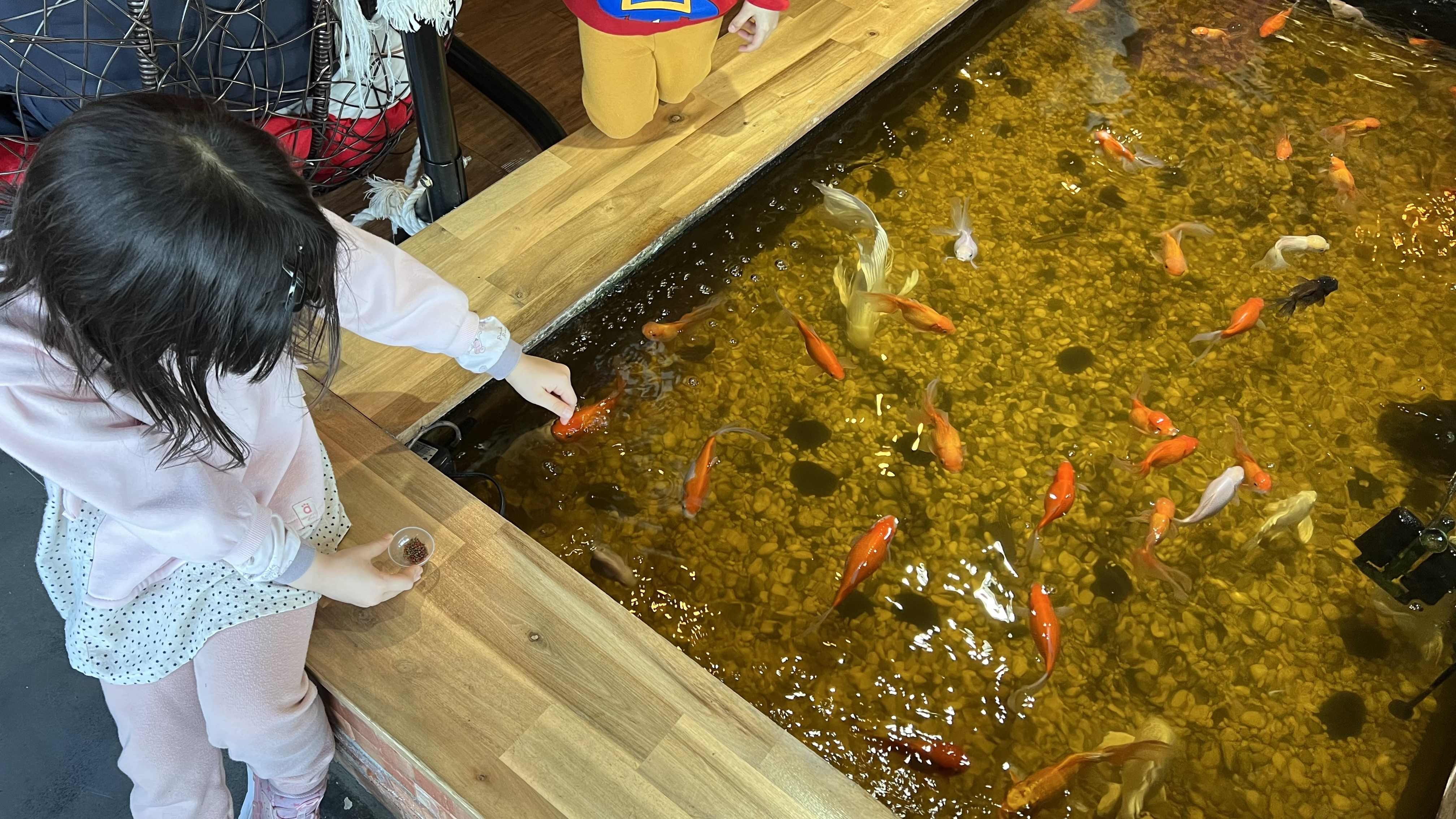 중앙 부분에 커다란 수족관이 있고 여러 종류의 물고기가 살고 있는데 이 물고기들에게도 먹이 주기 체험을 할 수 있다.