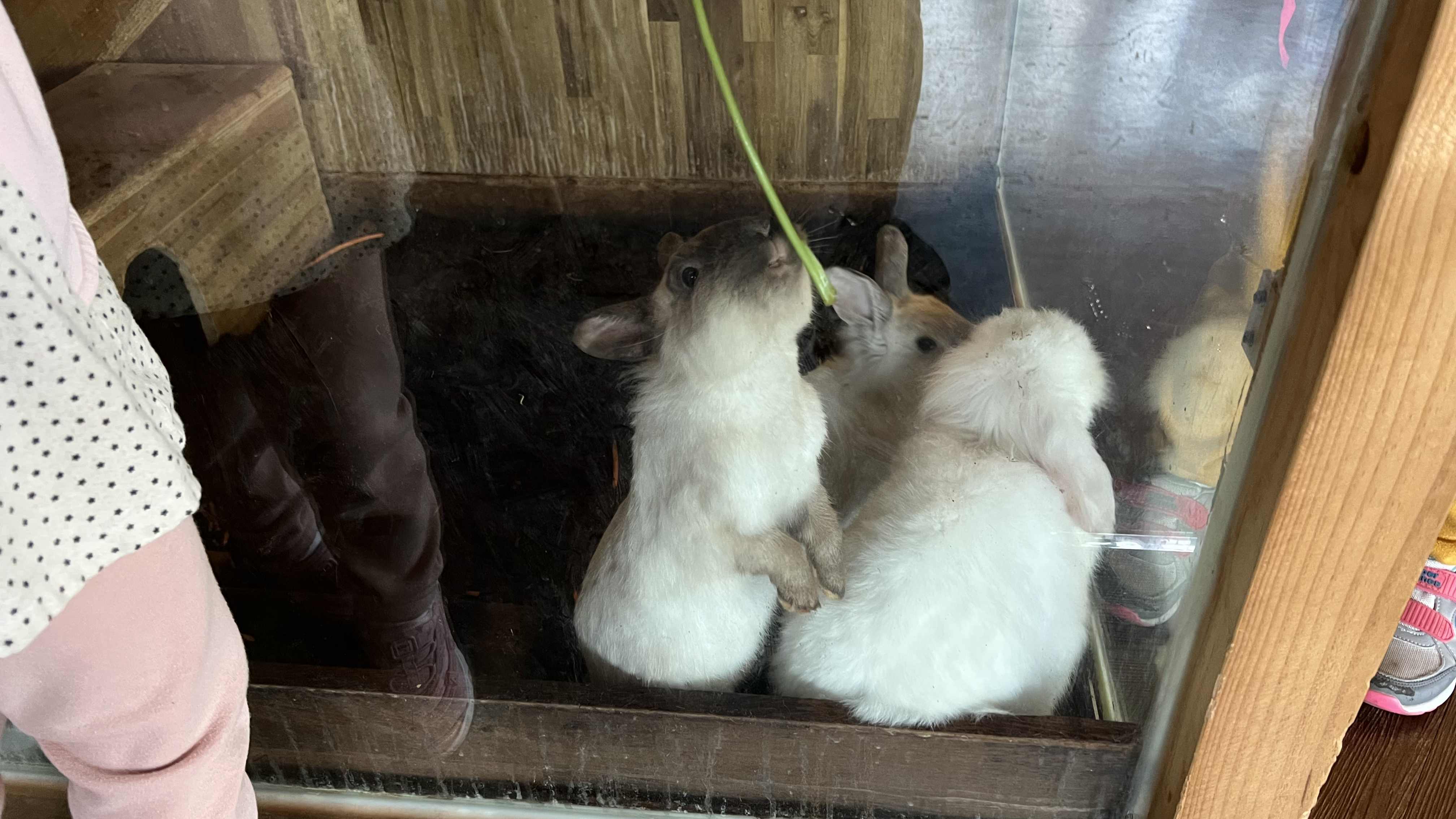 햄스터도 있었는데 자는 중이어서 만나지는 못했다. 햄스터는 야행성 동물이라서 관리자의 지도가 있어야 만져볼 수 있다고 한다. 가볍게 카페 구경을 마치고 이제 본격적으로 토끼에게 먹이주기 시작!