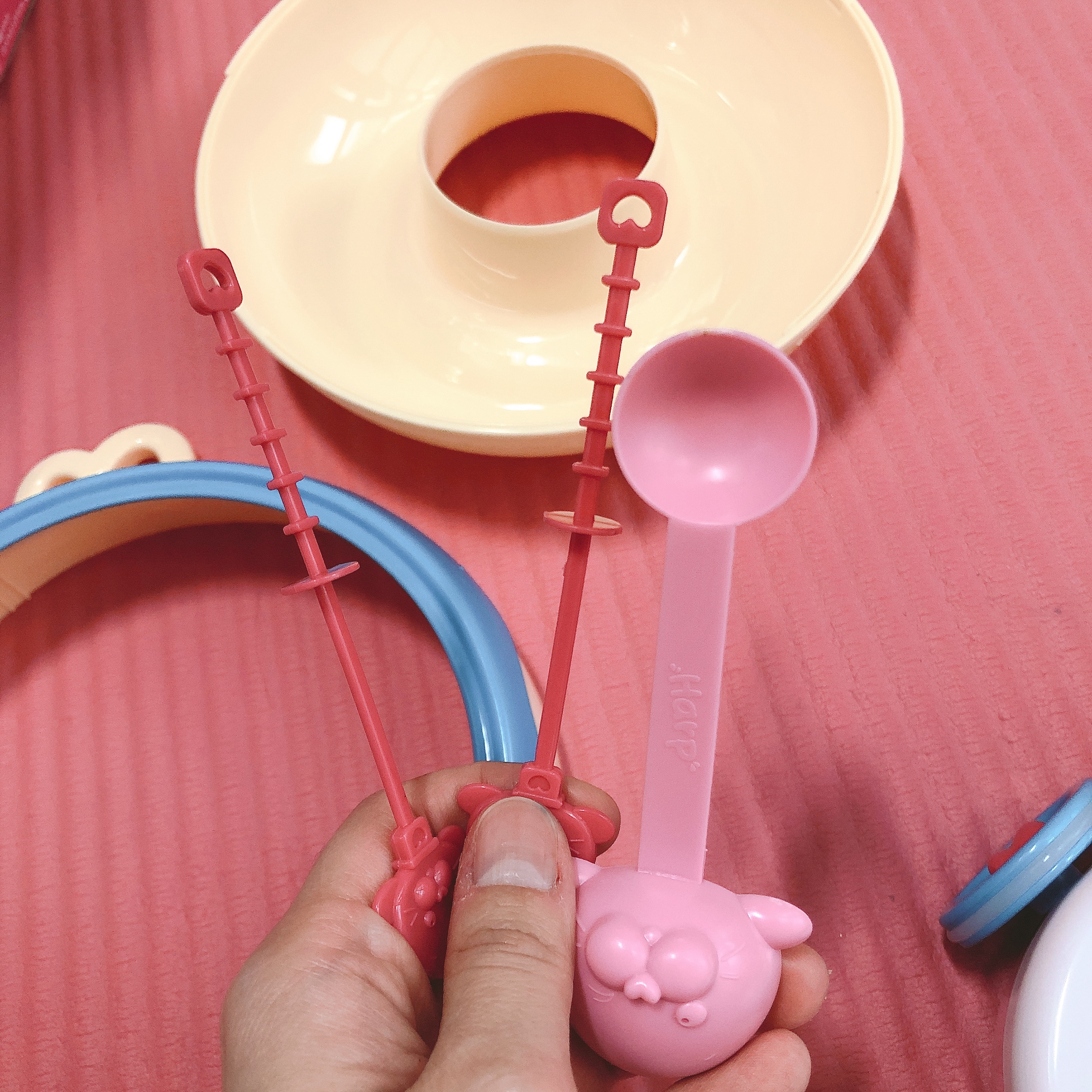 솜사탕을 만들 수 있는 막대 2개와 설탕 넣을 때 사용하는 스푼 1개도 들어 있다. 비슷한 크기의 제품으로 대체하여 사용이 가능하다.