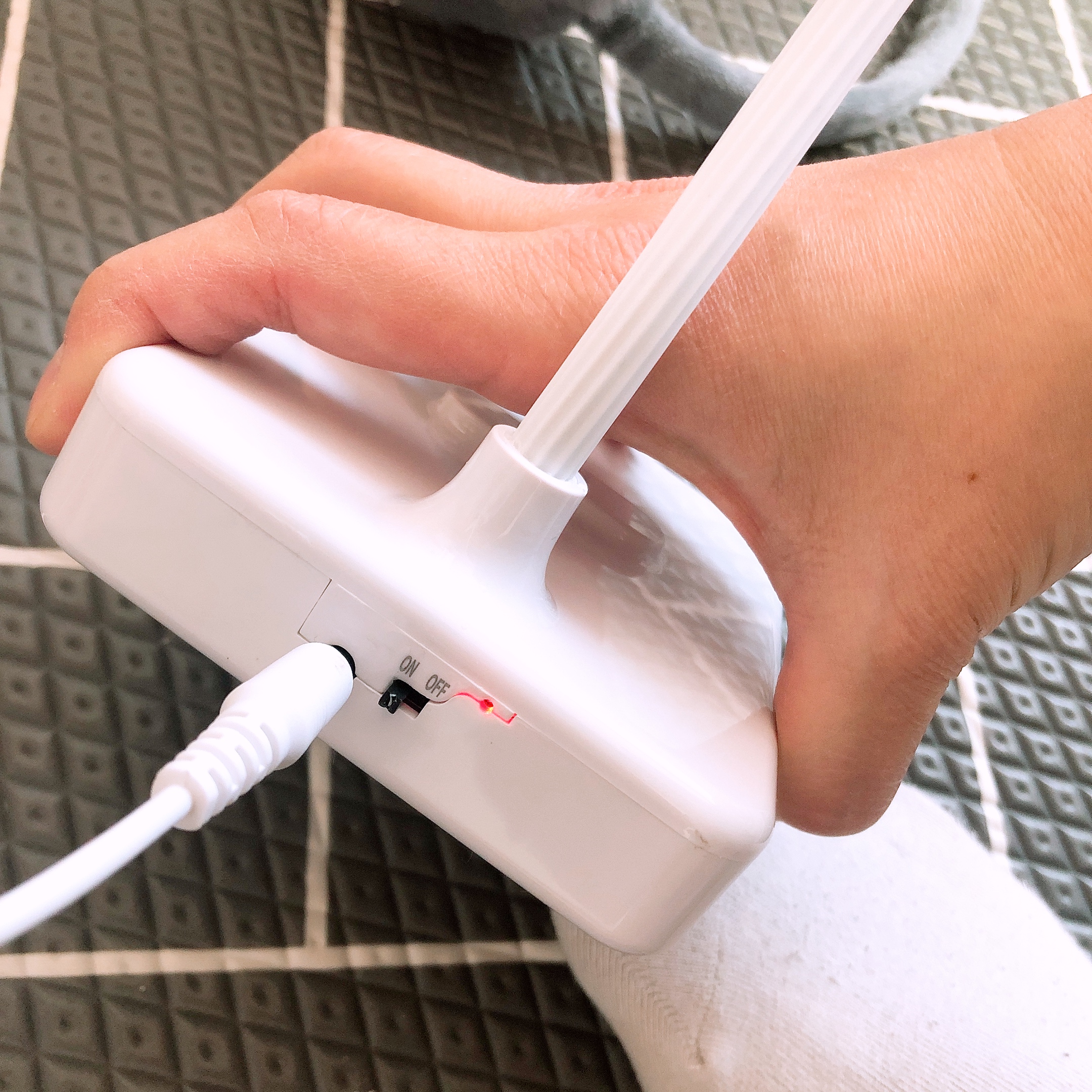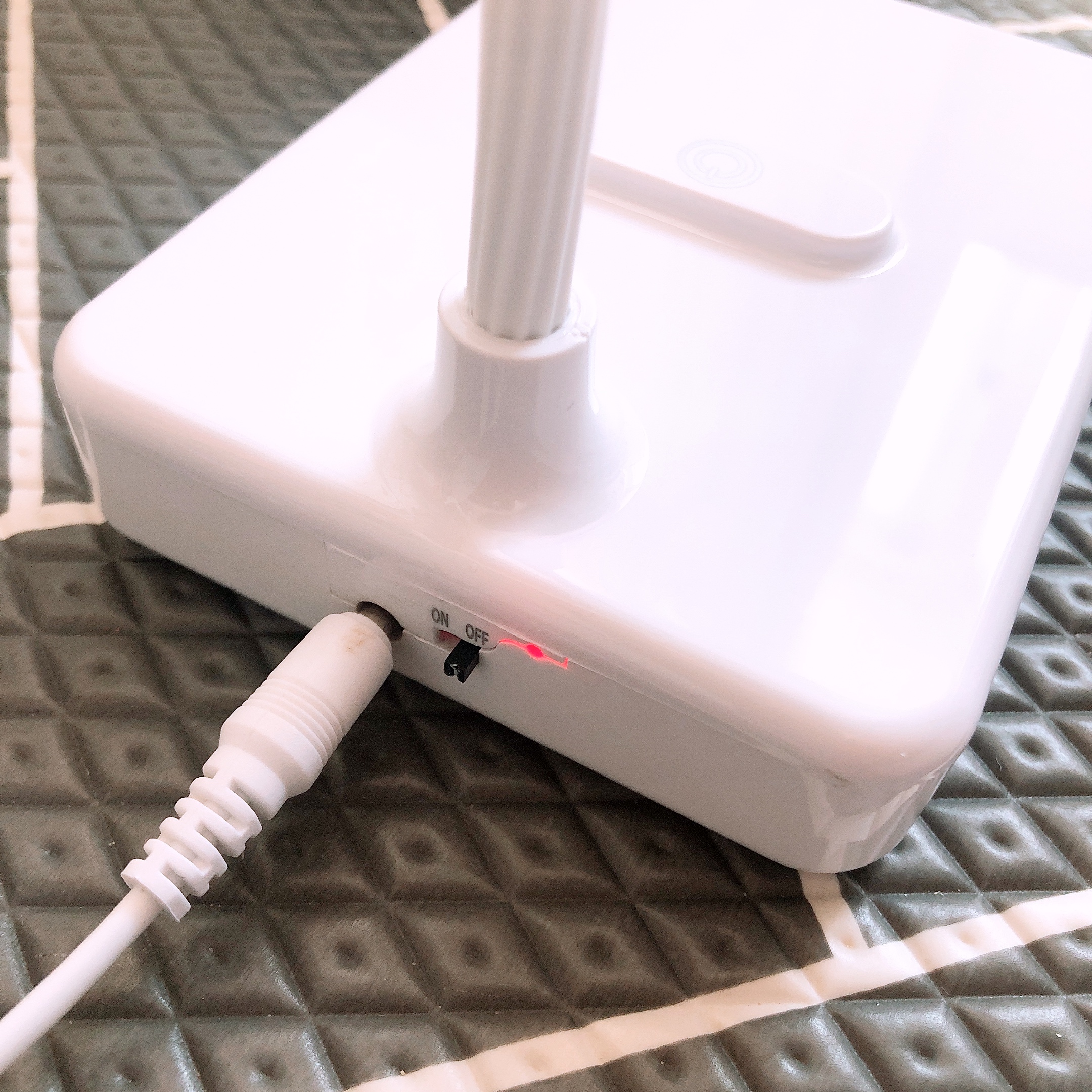그리고 파인블루 템프 스탠드의 좋은 점! 충전 중에도 사용 가능하다는 것~ 아답터 연결 시에 충전과 동시에 점등하여 사용할 수 있다. 사용방법은 초초초 간단하다. 스탠드 뒷부분에 있는 스위치를 off -> on으로 바꾸고, 앞쪽에 있는 전원 버튼을 터치해 주면 된다. 이 버튼이 템프 스탠드에 딱 하나 있는 버튼인데, 이걸로 모든 기능이 다 된다.