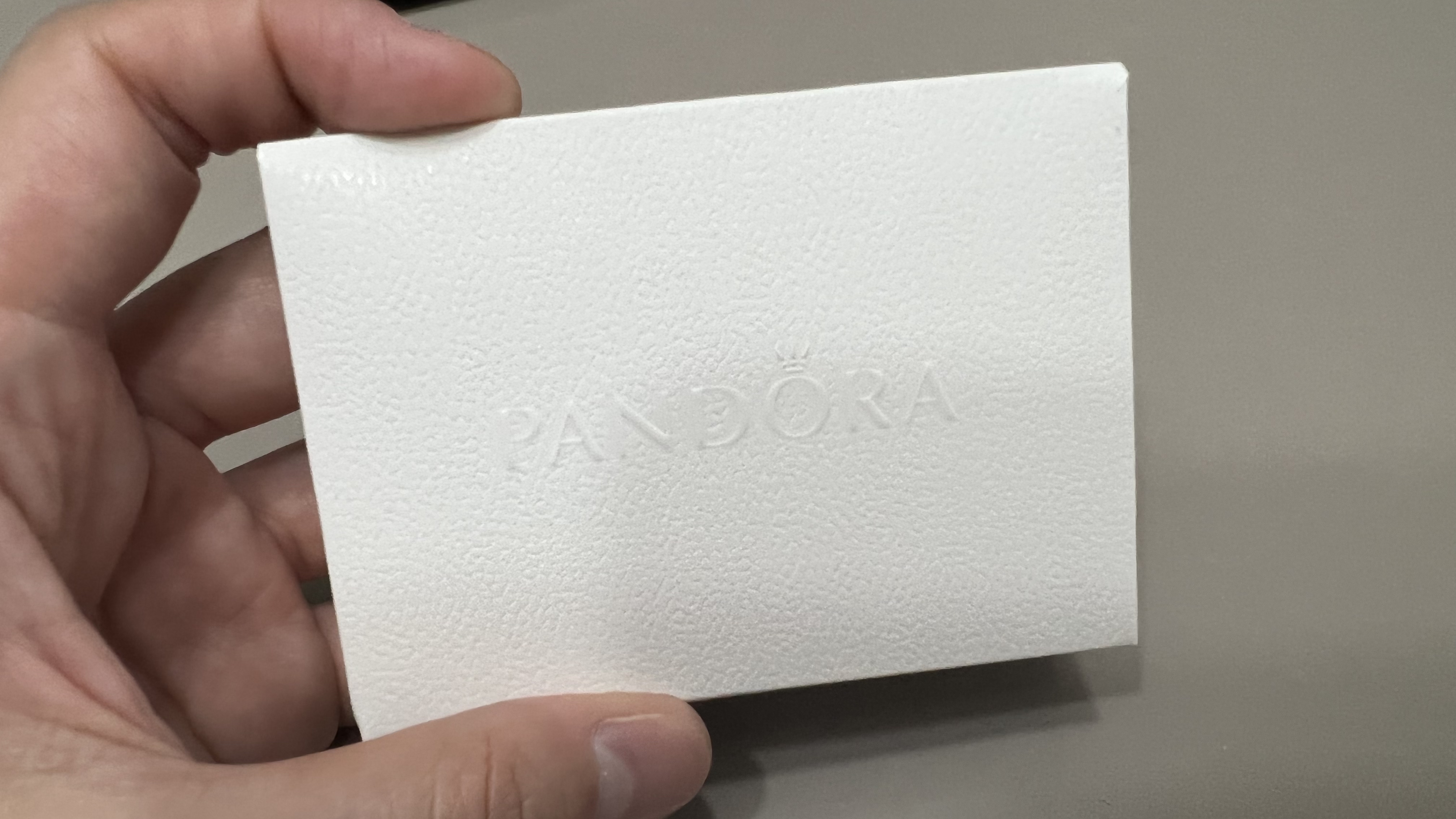 하얀 종이 패키지에 담겨서 도착한 나의 판도라 참~ 뒷면에는 PANDORA 로고가 새겨져 있었다.