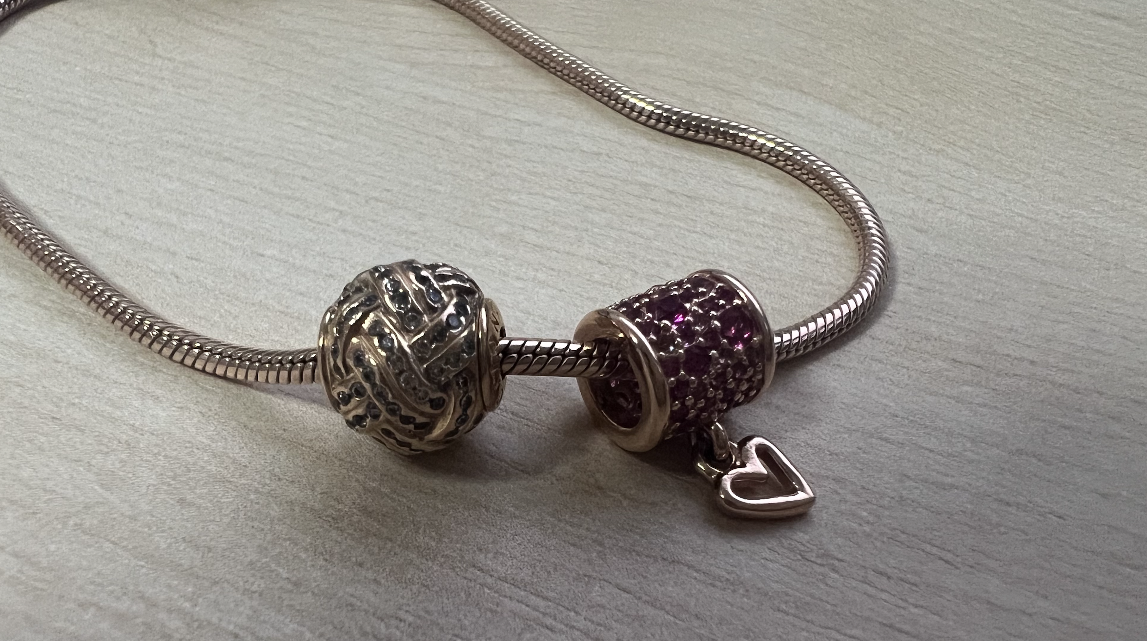 너무 예뻐서 한참을 구경하다가 가지고 있는 판도라 에센스 팔찌에 끼워보았다.