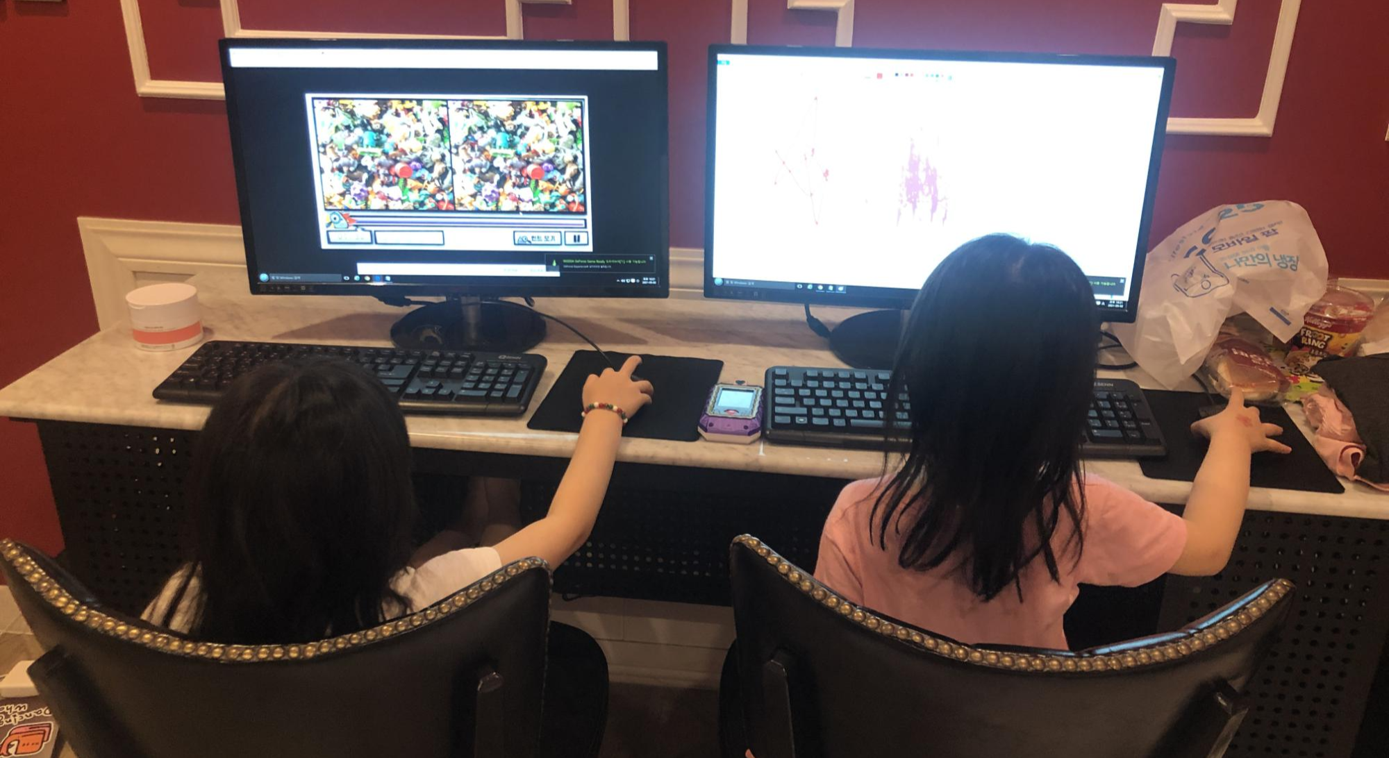 마우스와 키보드에 대해서 설명한지 10분도 채 지나지 않아 첫째 하요미는 틀린그림찾기를 하고, 둘째 소요미는 그림판에 그림을 그렸다.